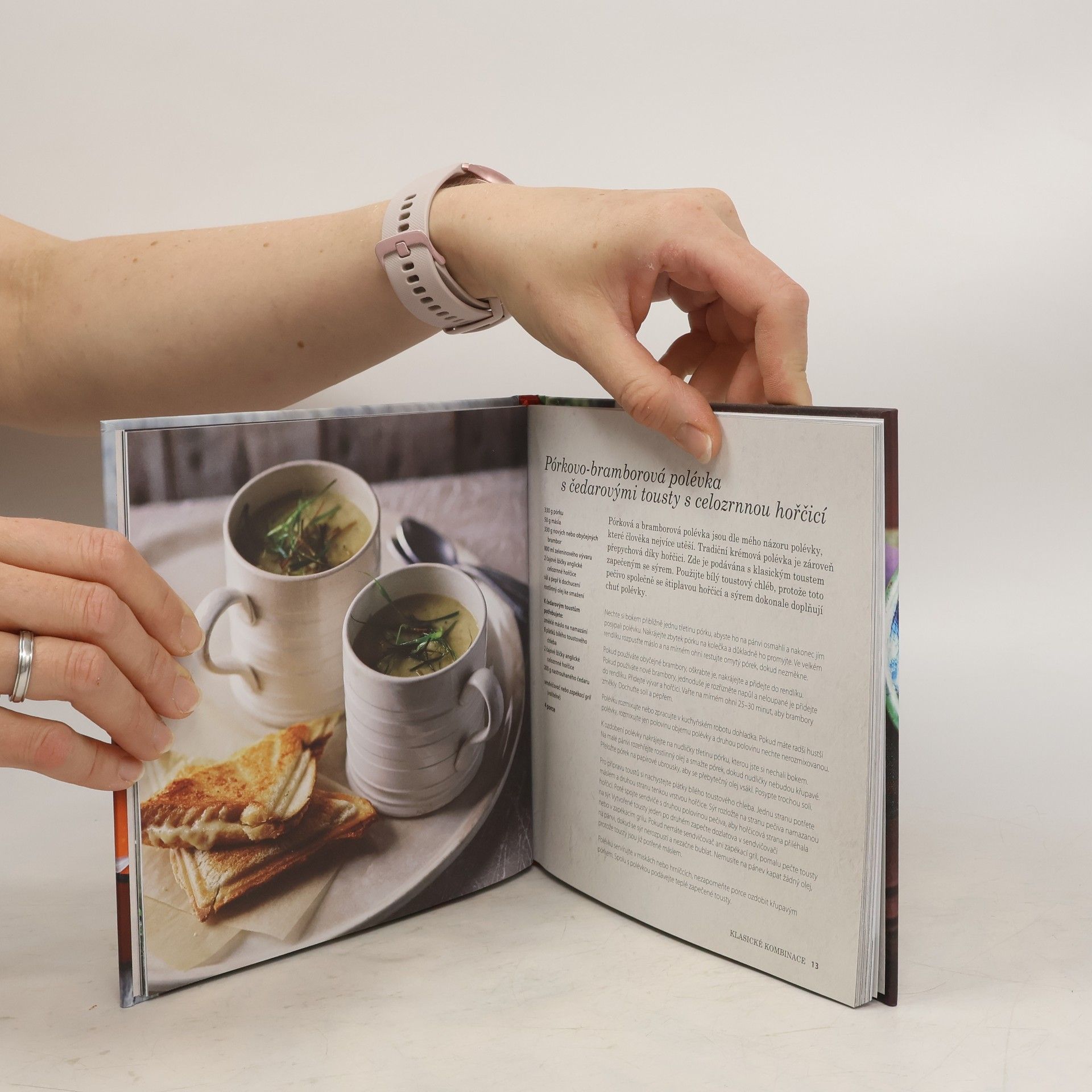 Skvělý pár pro lahodné jídlo Není nic lepšího, než si do výtečné polévky namočit sendvič, jejich chuť se spolu zkrátka snoubí. Jakmile objevíte tuto kouzelnou kombinaci, z obyčejného a skromného pokrmu se stane skutečně nadpozemský zážitek. V této kuchařce naleznete 25 dvojic, které se skládají z rozmanitých polévek a k nim vhodných sendvičů. Můžete je zkusit všechny, od oblíbených základních receptů v kapitole Klasické kombinace, v níž najdete tradiční polévky, například tu z pečených rajčat s panini zapečenými s mozzarellou a pestem, až po studenou avokádovou polévku s bagely plněnými uzeným lososem a žervé, jež najdete v kapitole Pochoutky pro labužníky. Pokud máte zrovna chuť na něco zdravějšího, nalistujte si kapitolu Něco lehkého na zub, kde najdete vybrané pochoutky, jako vietnamskou zeleninou polévku pho a sendvič bánh mì s tofu. Pokud by vám chybělo hřejivé slovo nebo výživná strava, zkuste třeba marockou cizrnovou polévku s kapsičkami plněnými falafelem a harissou, kterou můžete objevit v kapitole Domácí pohoda. Tato kuchařka je inspirována různými pochoutkami z celého světa, které se hodí pro jakéhokoliv jedlíka i příležitost. Určitě si vyberete, ať už vám chutná voňavý korejský hovězí vývar nebo úplně jiná hřejivá polévka. Labužníci všech zemí, spojte se! Už se vám nestane, že by jídlo nebylo podle vašich představ. Pochutnejte si na oblíbeném spojení polévky a sendviče.