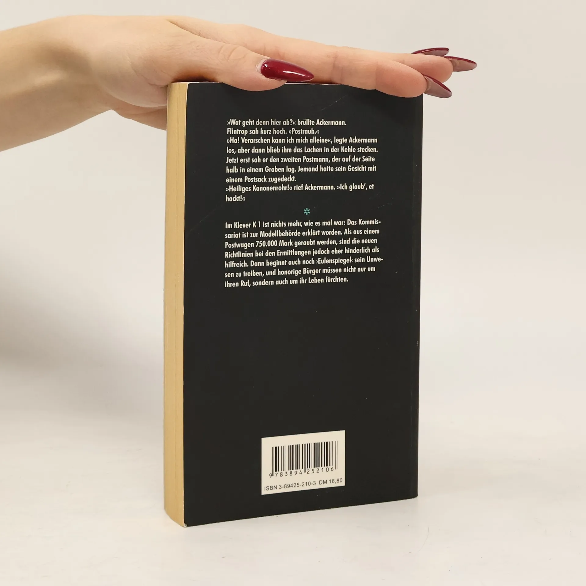 Der sechste Krimi mit dem Klever K 1. 'Das Autorentrio. hat sich mit seinen Krimis. schnell in der Szene durchgesetzt. Diesmal wird ein Postauto überfallen,. und ein Beamter kommt zu Tode. Bald darauf werden auf honorige Bürger der Region mysteriöse Anschläge verübt. Und stets versucht der Täter, sein Opfer der Lächerlichkeit preiszugeben. ›Eulenspiegel‹ heißt der unbekannte Täter schon bei der Polizei. Aber zum Lachen ist niemandem mehr zumute, als es erneut einen Toten gibt.' (Oberhessische Presse) 'Hiltrud Leenders, Michael Bay und Artur Leenders haben mittlerweile weit über den Niederrhein hinaus eine treue Fangemeinde. für Spannung ist gesorgt, wobei auch eine gehörige Portion Humor drin ist.' (Rheinische Post)