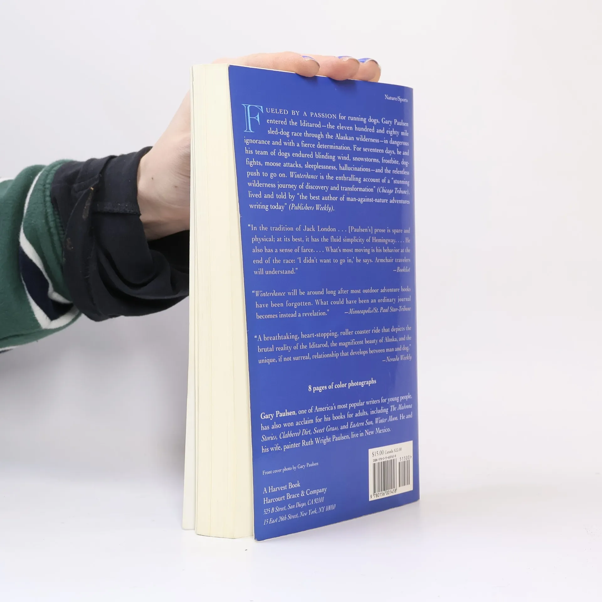 Paulsen and his team of dogs endured snowstorms, frostbite, dogfights, moose attacks, sleeplessness, and hallucinations in the relentless push to go on. Map and color photographs.