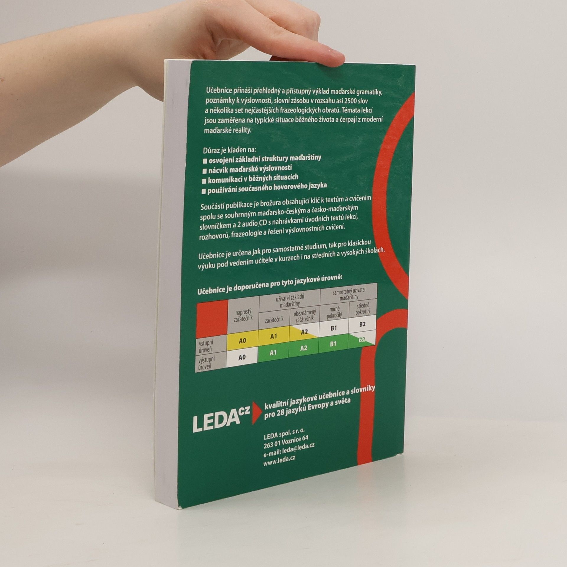 Učebnice maďarštiny od autorky Angeliky Schreierové z oblíbené řady jazykových učebnic určených (nejen) samoukům. Obsahuje 30 lekcí, které kombinují text v maďarském jazyce a následně gramatickou část. Čtenář si tak postupně zvyká na čtení lehčích textů v cílovém jazyce a souběžně se učí základním pravopisným jevům. Na konci učebnice by měl čtenář ovládat 2500 slov. Součástí jsou také tabulky s gramatickými jevy a k dispozici ke stažení je nahrávka v mp3. K učebnici patří také doplňkový svazek obsahující klíč ke cvičením a slovník. Maďarština (nejen) pro samouky je vhodná pro kohokoli, kdo se chce rychle a efektivně naučit nový jazyk ve vší jeho komplexitě.