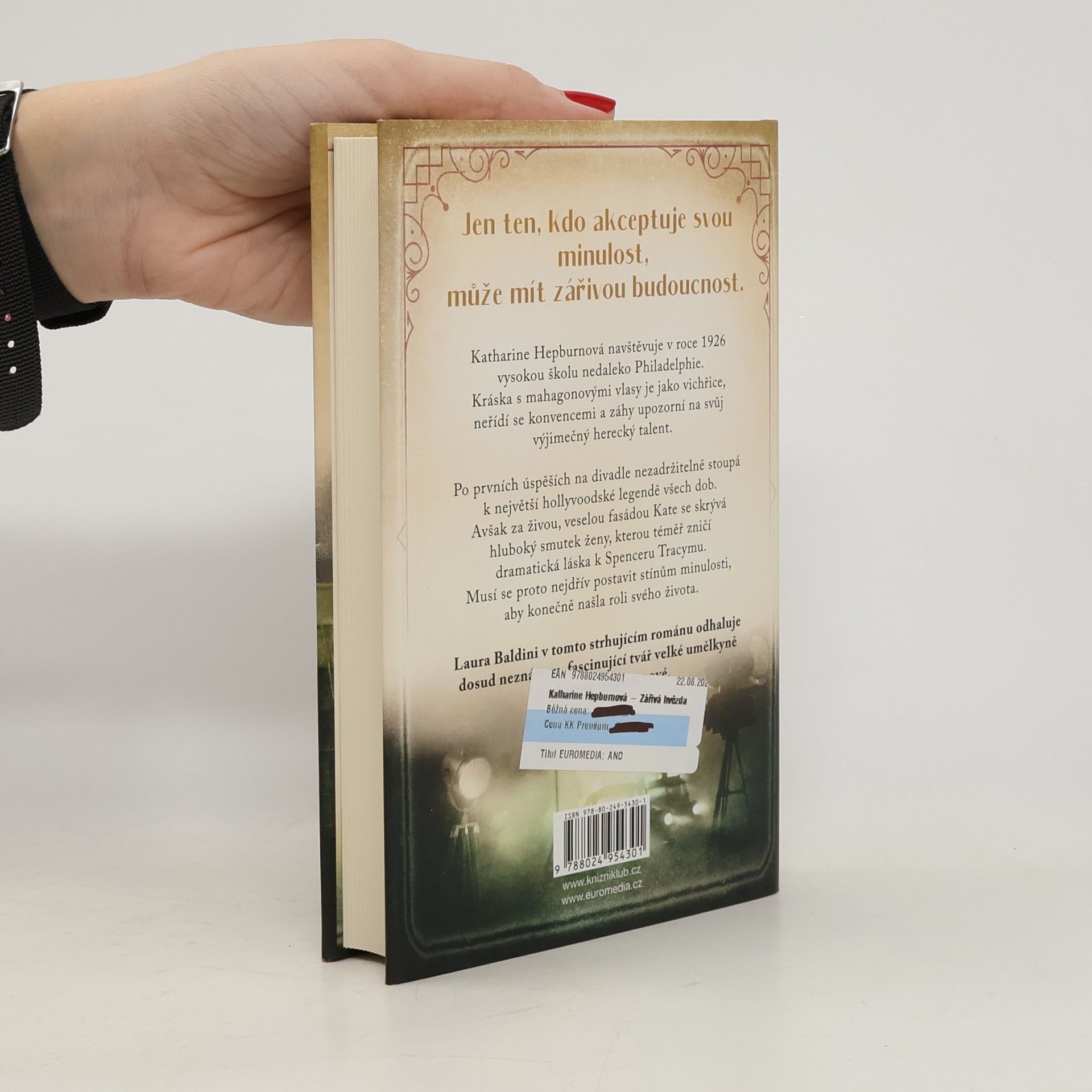 Strhující román odhaluje dosud neznámou, fascinující tvář velké umělkyně. Katharine Hepburnová po prvních úspěších na divadle nezadržitelně stoupá k největší hollyvoodské legendě všech dob. Za živou, veselou fasádou Kate se však skrývá hluboký smutek ženy, kterou téměř zničí dramatická láska k Spenceru Tracymu. Musí se proto nejdřív postavit stínům minulosti, aby konečně našla roli svého života.