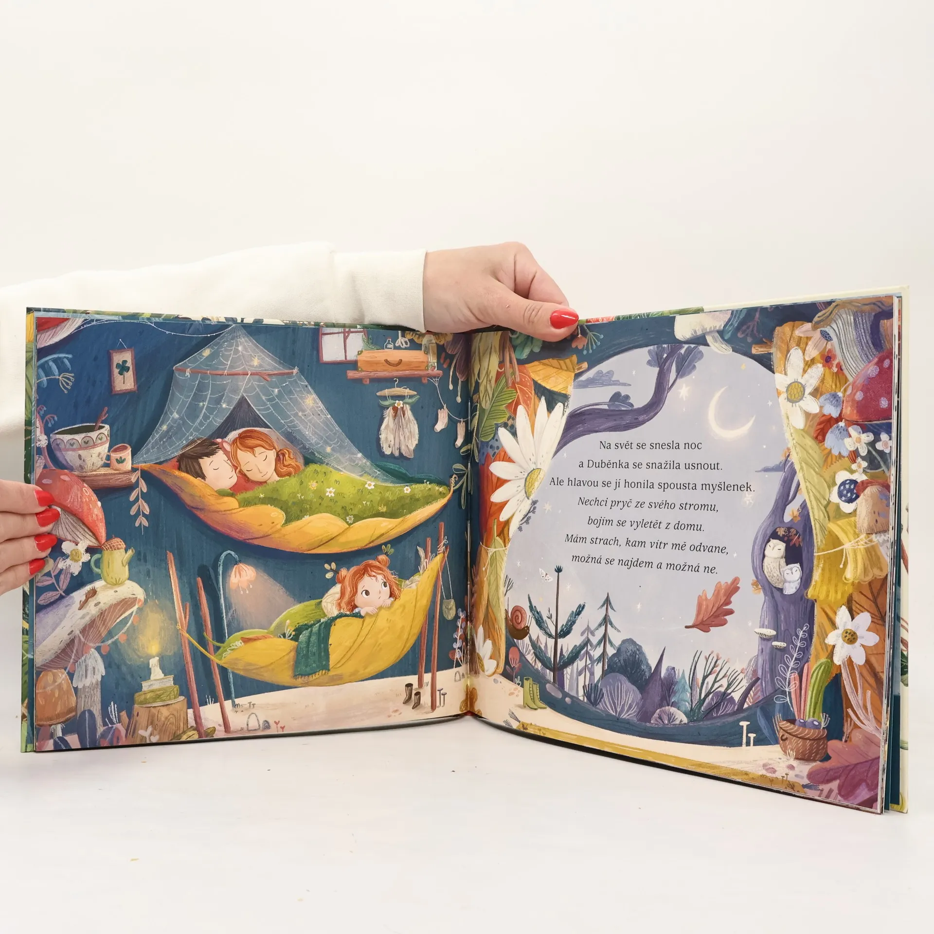 V koruně vysokého stromu žije stromová víla jménem Duběnka. Nejraději by celé dny jen dováděla, tancovala a pořádala čajové dýchánky se zvířecími kamarády. Ale jak se začíná měnit roční období a do vzduchu se vkrádá chlad, vše kolem se ukládá k zimnímu spánku. Duběnčina rodina se chystá na každoroční stěhování, malá víla se však odmítá hnout a tvrdohlavě se drží své milované větve. Bojí se tam dolů na zem, do neznáma. Opravdu doma jsme však většinou právě tam, kde jsou naši nejbližší...