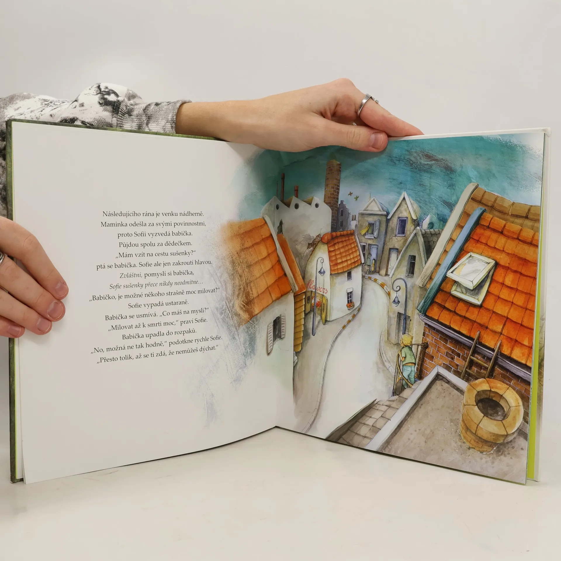 Sofie má moc ráda kluka ze své třídy. Cítí se úzkostně, ale zároveň i šťastně. Svěří se babičce, protože ta vždycky ví, co dělat. „Měla bys mu to říct, že ho máš ráda,“ radí jí babička. Ale coby měla Sofie říct? A kde? A kdy? Babička a dědeček se s ní podělí o příběh své lásky. A tím Sofii vnuknou nápad…