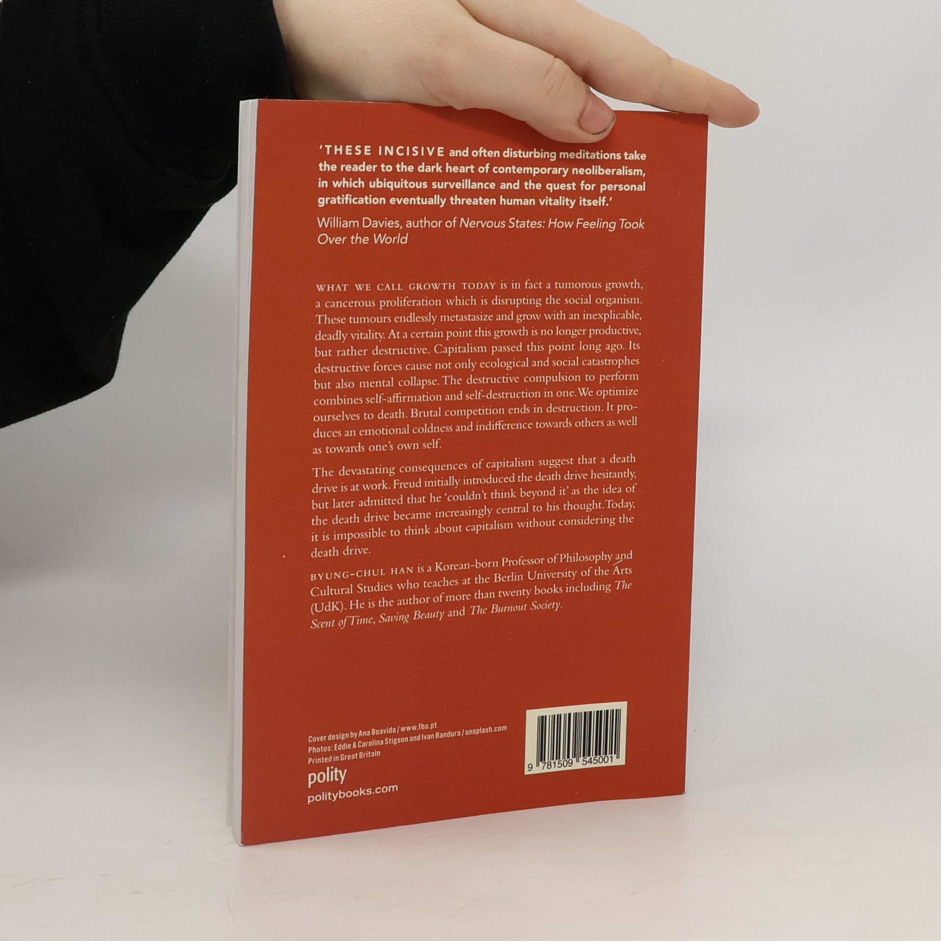 What we call growth today is in fact a tumorous growth, a cancerous proliferation which is disrupting the social organism. These tumours endlessly metastasize and grow with an inexplicable, deadly vitality. At a certain point this growth is no longer productive, but rather destructive. Capitalism passed this point long ago. Its destructive forces cause not only ecological and social catastrophes but also mental collapse. The destructive compulsion to perform combines self-affirmation and self-destruction in one. We optimize ourselves to death. Brutal competition ends in destruction. It produces an emotional coldness and indifference towards others as well as towards one's own self. The devastating consequences of capitalism converge with the adoption of a death drive. Freud initially introduced the death drive hesitantly, but later he admitted that he 'couldn't think beyond it' as the idea of the death drive became increasingly central to his thought. The same is true for capitalism today: it is impossible to think about capitalism without considering the death drive. This new book by one of the most creative cultural theorists writing today will be of interest to a wide readership.
