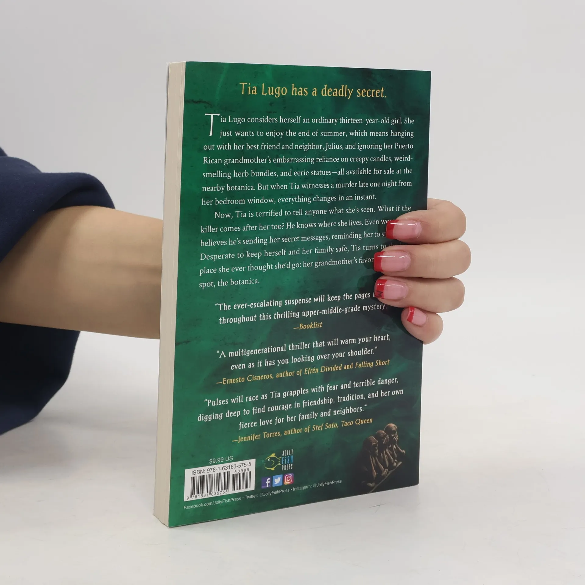 Tia Lugo has a deadly secret.Tia Lugo considers herself an ordinary thirteen-year-old girl. She just wants to enjoy the end of summer, which means hanging out with her best friend and neighbor, Julius, and ignoring her Puerto Rican grandmother’s embarrassing reliance on creepy candles, weird-smelling herb bundles, and eerie statues—all available for sale at the nearby botánica. But when Tia witnesses a murder late one night from her bedroom window, everything changes in an instant. Now, Tia is terrified to tell anyone what she’s seen. What if the killer comes after her too? He knows where she lives. Even worse, Tia believes he’s sending her secret messages, reminding her to stay quiet. Desperate to keep herself and her family safe, Tia turns to the last place she ever thought she’d go: her grandmother's favorite shopping spot, the botánica.