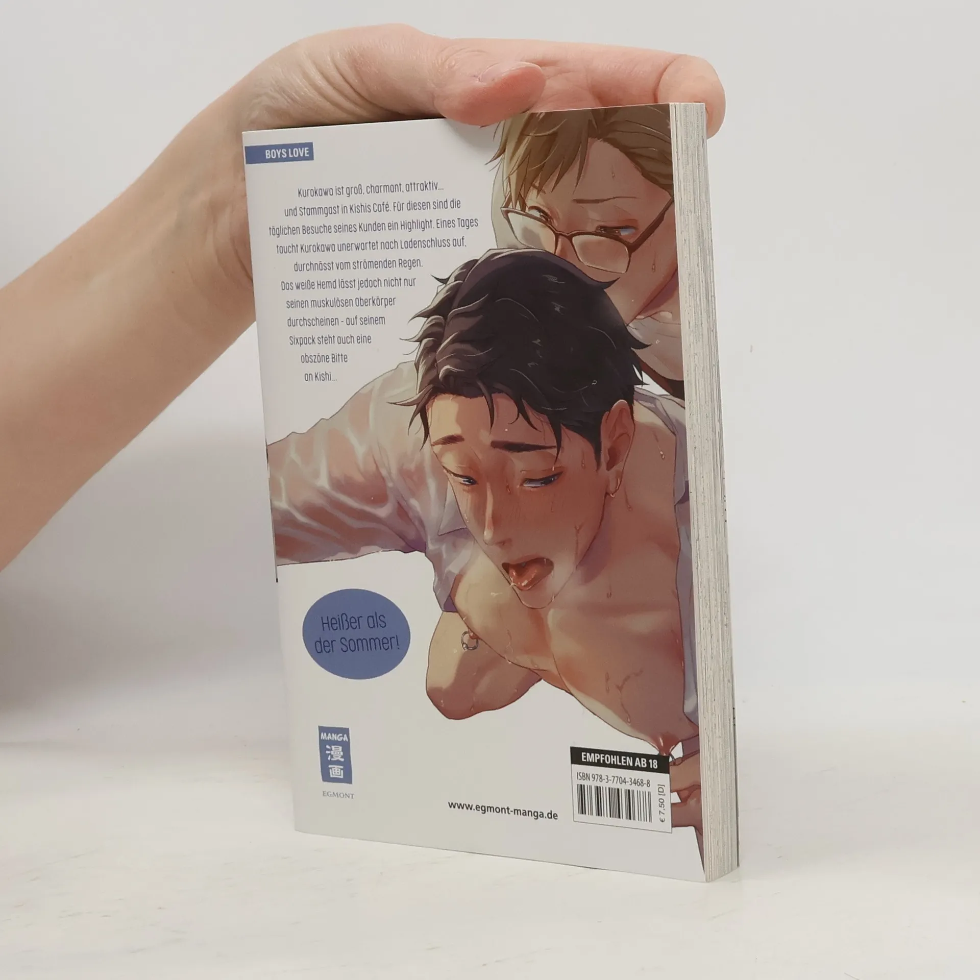 Kurokawa ist groß, charmant, attraktiv... und Stammgast im Café, in dem Kishi arbeitet. Für diesen sind die täglichen Besuche seines Kunden ein Highlight, denn Kishi steht total auf den Geschäftsman. Eines Tages taucht Kurokawa unerwartet nach Ladenschluss in Kishis Café auf, durchnässt vom ströhmenden Regen. Das weiße Hemd lässt jedoch nicht nur Kurokawas muskulösen Oberkörper durchscheinen – auf seinem Sixpack steht auch eine vulgäre Bitte an Kishi...