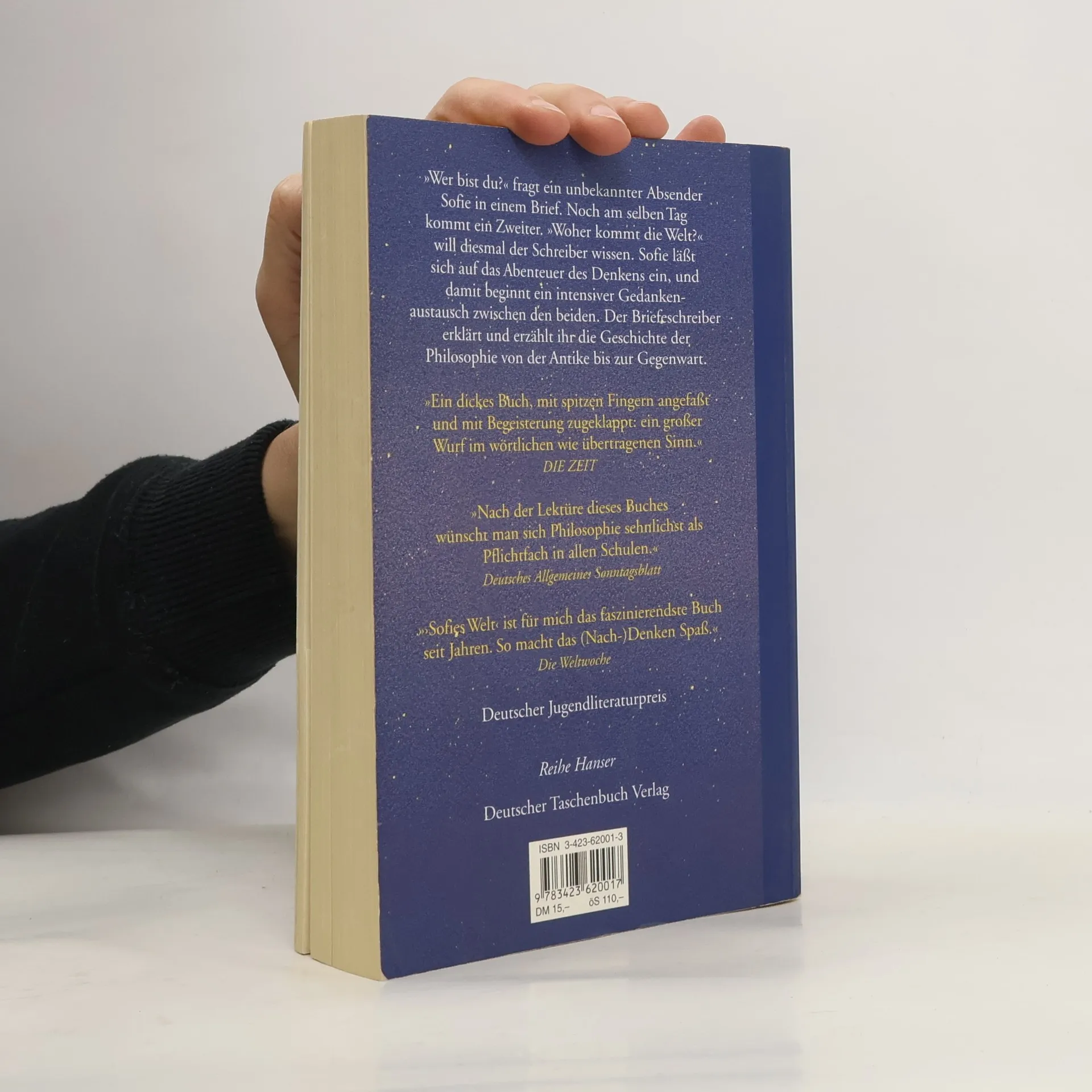 Mysteriöse Briefe landen im Briefkasten der 15jährigen Sofie Amundsen in Oslo. Was sollen diese Fragen: »Wer bist du?«, »Was ist ein Mensch?« und »Woher kommt die Welt?«. Sofie ist irritiert. Die Briefe werden ausführlicher und entführen sie in die abenteuerliche und geheimnisvolle Gedankenwelt der großen Philosophen. Ihr unbekannter Briefeschreiber erzählt Sofie die Geschichte Europas, der Antike, des Mittelalters und der Renaissance und dann nimmt die Geschichte eine unglaubliche Wendung.