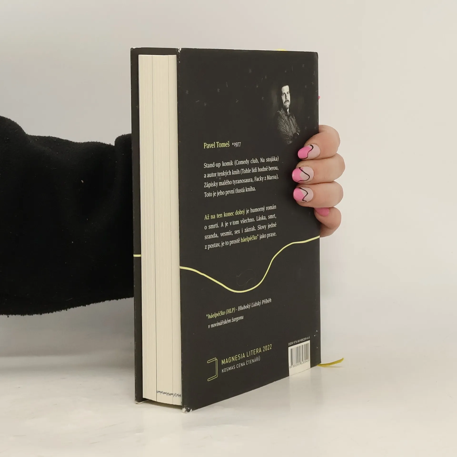 Humorný román o smrti. A je v tom všechno. Láska, smrt, sranda, vesmír, sex i zázrak. Slovy jedné z postav, je to prostě „háelpéčko* jako prase“. (*háelpéčko (HLP) –Hluboký Lidský Příběh v novinářském žargonu) Pavel Tomeš je stand-up komik, kterého můžete znát z TV pořadů Comedy club a Na stojáka. Vydal sbírky fejetonů Tohle lidi hodně berou, Zápisky malého tyranosaura a Facky z Marsu.
