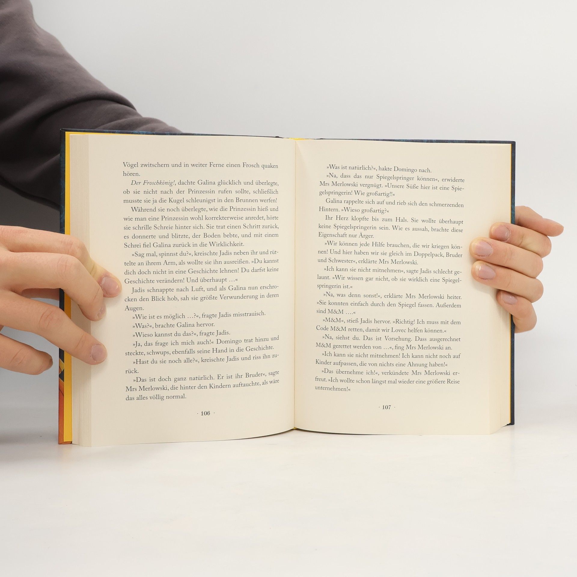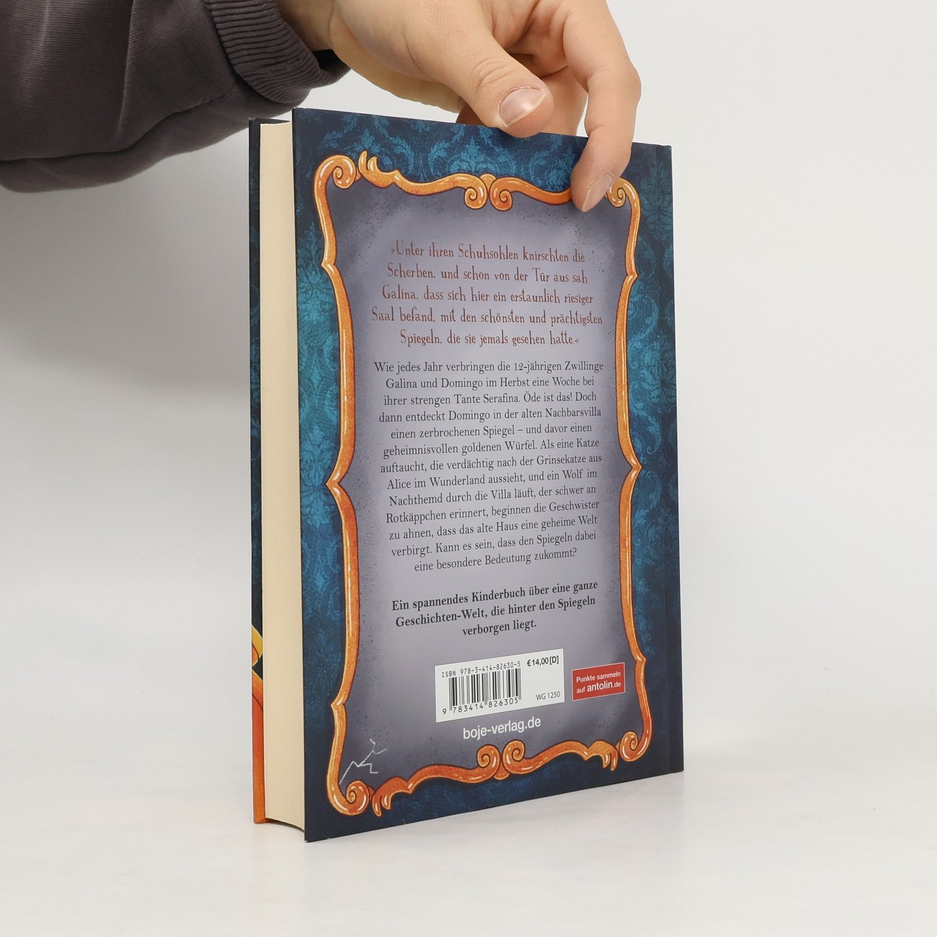 »Unter ihren Schuhsohlen knirschten die Scherben, und schon von der Tür aus sah Galina, dass sich hier ein erstaunlich riesiger Saal befand, mit den schönsten und prächtigsten Spiegeln, die sie jemals gesehen hatte.«Wie jedes Jahr verbringen die 12-jährigen Zwillinge Galina und Domingo im Herbst eine Woche bei ihrer strengen Tante Serafina. Öde ist das! Doch dann entdeckt Domingo in der alten Nachbarsvilla einen zerbrochenen Spiegel - und davor einen geheimnisvollen goldenen Würfel. Als eine Katze auftaucht, die verdächtig nach der Grinsekatze aus Alice im Wunderland aussieht und ein Wolf im Nachthemd durch die Villa läuft, der schwer an Rotkäppchen erinnert, beginnen die Geschwister zu ahnen, dass das alte Haus eine geheime Welt verbirgt. Kann es sein, dass den Spiegeln dabei eine besondere Bedeutung zukommt?Ein spannendes Kinderbuch über eine ganze Geschichten-Welt, die hinter den Spiegeln verborgen liegt.