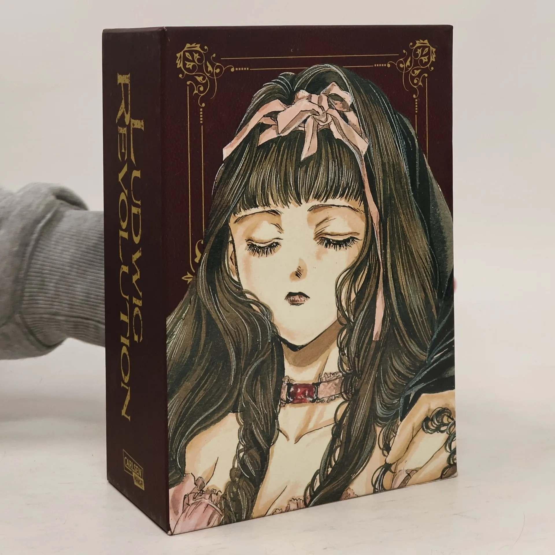Düstere Märchengeschichten im edlen SammelschuberStar-Zeichnerin Kaori Yuki erzählt in "Ludwig Revolution" altbekannte Märchengeschichten auf neue Weise und verzaubert dabei mit ihrem wunderschönen, Detail-verliebten Zeichnungen. Es geht um den jungen Prinz Ludwig, welcher von seinem Vater in die Welt geschickt wird , um eine Braut zu finden. Durch die Heirat soll das Königreich wieder Wohlstand kommen. In Begleitung von seinem Knecht Wilhelm begegnet er auf seiner Reise allerlei Märchengestalten: von Rapunzel bis hin zum Froschkönig.Die Manga-Künstlerin ist bereits durch Serien wie "Angel Sanctuary" oder auch "Alice in Murderland" bekannt für ihre außergewöhnlichen Dark Fantasy-Geschichten mit romantischen, düsteren Zeichnungen. Auch in dieser Neuauflage ihres Klassikers zeigt sie die tiefen Abgründe der Menschlichkeit und zieht einen beim Lesen mit ihrer eigenen Interpretation der Gebrüder Grimm Märchen in den Bann. Die Gesamtausgabe fasst die ursprünglich in vier Bänden erschienene Mini-Serie in zwei großformatigen Doppelbänden zusammen, welche auch Farbseiten enthalten. Verpackt in einem hübschen Sammelschuber ist dies ein Schmuckstück für jede Manga-Sammlung.Die Reihe ist für Fans von "Rosen Blood", "Belle und das Biest im verlorenen Paradies" sowie "Black Butler" geeignet und für Leser*innen ab 16 Jahren empfohlen.