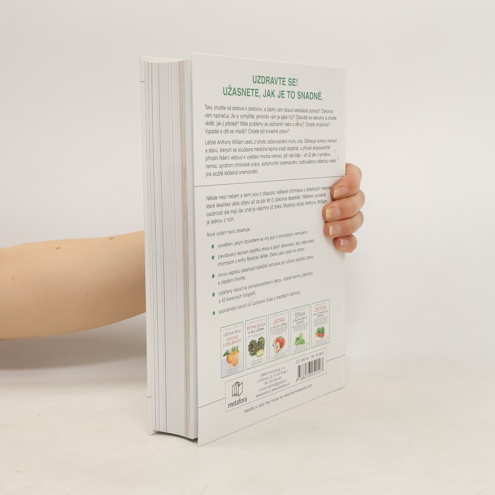 Taky chodíte od doktora k doktorovi, a žádný vám dosud nedokázal pomoct? Dokonce vám naznačují, že jste simulanti, jenomže vám je stále hůř? Obáváte se rakoviny a chcete vědět, jak jí předejít? Chcete zhubnout? Vypadat a cítit se mladší? Chcete být konečně zdraví? Léčitel Anthony William cestu z tohoto začarovaného kruhu zná. Odhaluje kořeny nemocí a stavů, které se současná medicína teprve snaží zjistit, a přináší stoprocentně přírodní řešení k vyléčení mnoha nemocí, co nás trápí – Lymská nemoc, syndrom chronické únavy, autoimunitní onemocnění, roztroušená skleróza a mnoho dalších. Tam někde ve vyšších sférách jsou uložené veškeré informace o léčebných metodách, které lékařská věda objeví až za pár let či dokonce desetiletí. Jisté výjimečné osobnosti ale mají dar znát je všechny již dnes. Mystický léčitel Anthony William je jedním z nich. Nové vydání navíc obsahuje: vysvětlení, jakým způsobem se viry pojí s chronickými nemocemi zrevidovaný seznam doplňků stravy a jejich dávkování, aby odpovídaly informacím z knihy Mystický léčitel: Detox jako cesta ke zdraví novou kapitolu, obsahující důležité instrukce pro užívání doplňků stravy a zlepšení imunity rozšířený návod na osmadvacetidenní detox, včetně návrhu jídelníčku a 45 barevných fotografií rozšířený návod na uzdravení duše a meditační techniky