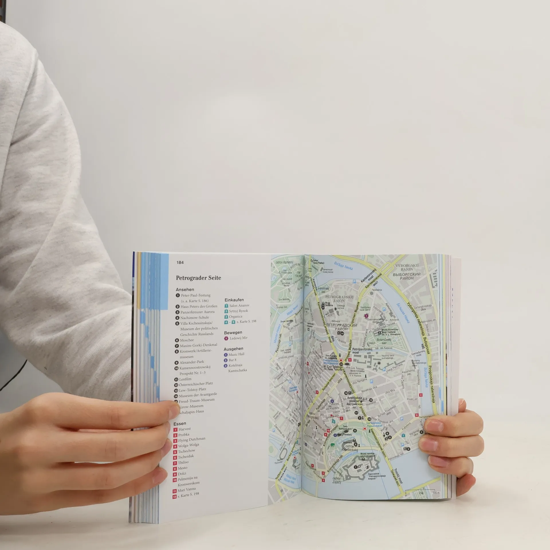 Zahlreiche DuMont Reise-Taschenbücher sind bereits im neuen, modernen Layout der bekannten Reihe erschienen. Auch der Führer zu St. Petersburg (zuletzt 3/17) wurde überarbeitet und teilweise neu strukturiert. Die Einführung besteht aus allgemeinen Informationen und der Rubrik "Überflieger", in der auf einer Doppelseite in einer Art Word-Cloud die Besonderheiten der Stadt dargestellt werden. Der eigentliche Fokus liegt auf der Vorstellung von sieben Stadtgebieten und Ausflügen in die Umgebung. Vorangestellt ist den einzelnen Kapiteln die neue Rubrik "Eintauchen & erleben", mit einer Vorschau zu besonderen Orten im Gebiet. Und abgeschlossen werden sie jeweils von einer "Zugabe", die in Form von Reportagen, Interviews und Nahaufnahmen eine besondere Nähe zu den Menschen vermitteln soll. Die Modernisierung ist gelungen, teilweise macht eine andere Struktur die Informationen überschaubarer. Austausch der Ausgabe von 2017 empfohlen. Möglich vor M. Bingel (Reise Know-how; ID-A 19/18, eT 49/19) oder dem Stadtführer von M. Kappler (Nelles; ID-A 42/20). (2)