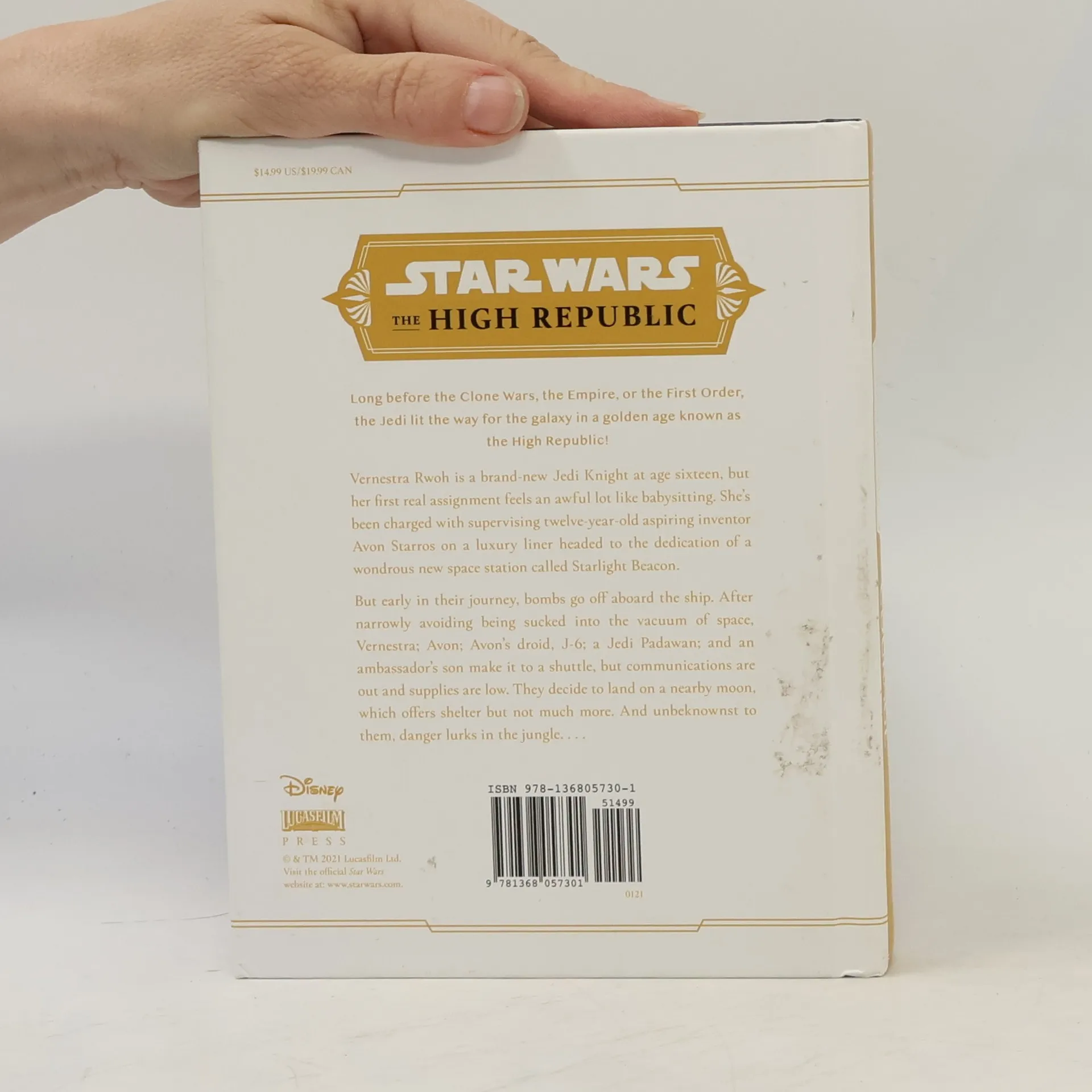 Long before the Clone Wars, the Empire, or the First Order, the Jedi lit the way for the galaxy in a golden age known as the High Republic! Vernestra Rwoh is a new Jedi Knight at age sixteen, but her first real assignment feels an awful lot like babysitting. She's been charged with supervising twelve-year old aspiring inventor Avon Starros on a cruiser headed to the dedication of a wondrous new space station called Starlight Beacon. But soon into their journey, bombs go off aboard the cruiser. While the adult Jedi try to save the ship, Vernestra, Avon, Avon's droid J-6, a Jedi Padawan, and an ambassador's son make it to an escape shuttle, but communications are out and supplies are low. They decide to land on a nearby moon, which offers shelter but not much more. And unbeknownst to them, danger lurks in the forest?