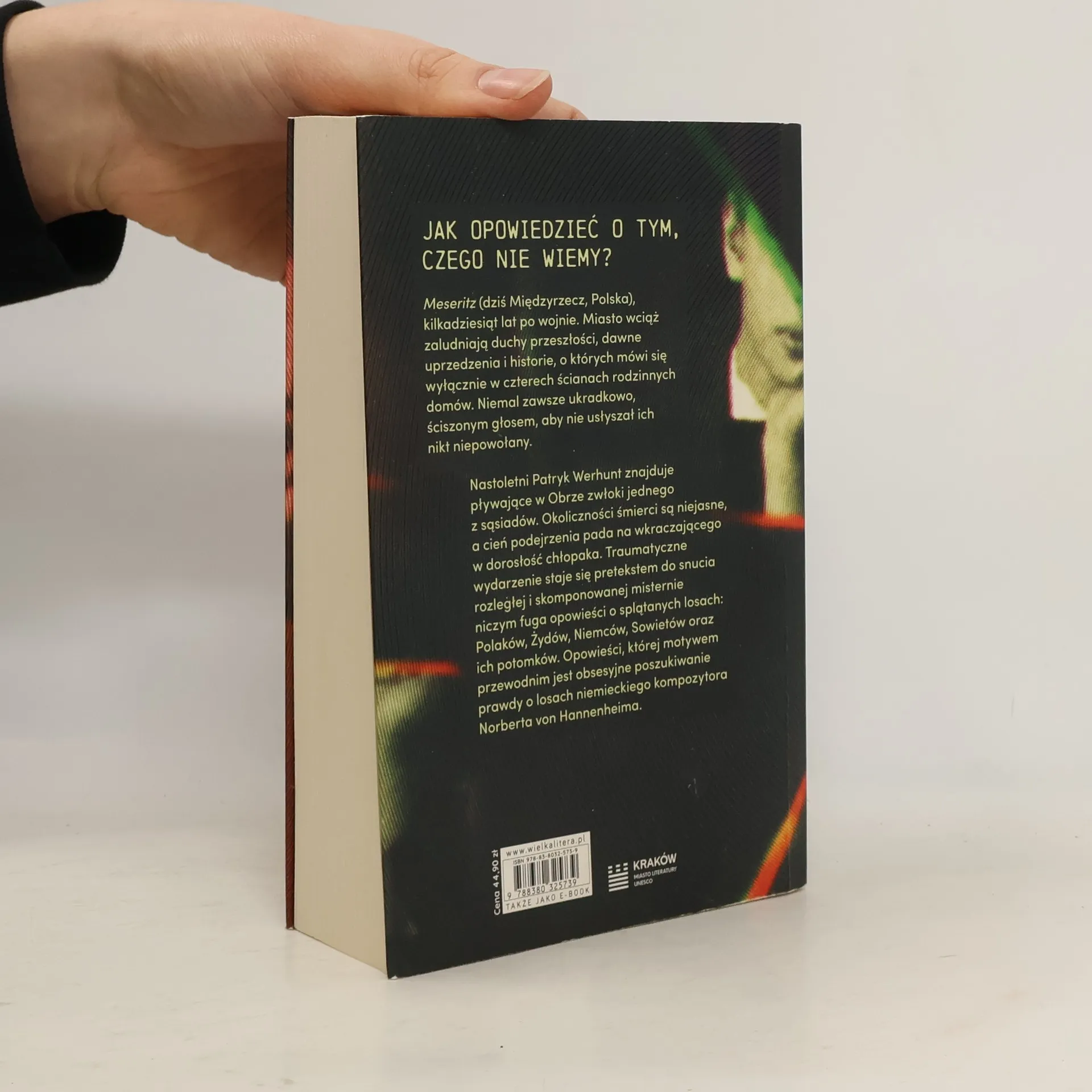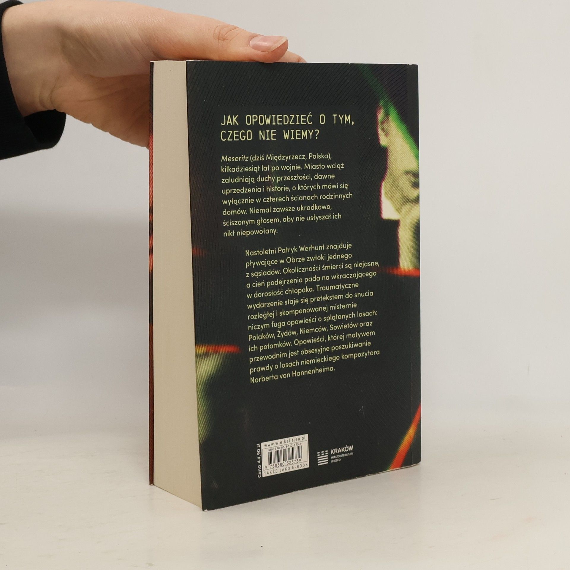Jak opowiedzieć o tym, czego nie wiemy? Meseritz (dziś Międzyrzecz, Polska), kilkadziesiąt lat po wojnie. Miasto wciąż zaludniają duchy przeszłości, dawne uprzedzenia i historie, o których mówi się wyłącznie w czterech ścianach rodzinnych domów. Niemal zawsze ukradkowo, ściszonym głosem, aby nie usłyszał ich nikt niepowołany. Nastoletni Patryk Werhunt znajduje pływające w Obrze zwłoki jednego z sąsiadów. Okoliczności śmierci są niejasne, a cień podejrzenia pada na wkraczającego w dorosłość chłopaka. Traumatyczne wydarzenie staje się pretekstem do snucia rozległej i skomponowanej misternie niczym fuga opowieści o splątanych losach: Polaków, Żydów, Niemców, Sowietów oraz ich potomków. Opowieści, której motywem przewodnim jest obsesyjne poszukiwanie prawdy o losach niemieckiego kompozytora Norberta von Hannenheima. To także rzecz o byciu odmieńcem, kundlem, w chwilach, kiedy życie i historia nie dają innego wyboru.