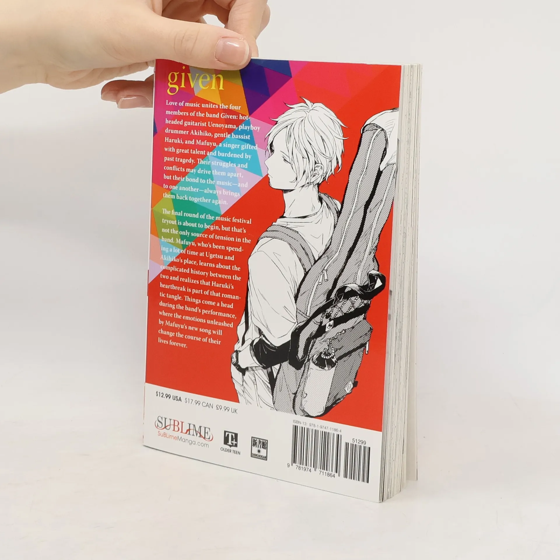 Sometimes a song can save your life.Love of music unites the four members of the band Given: hotheaded guitarist Uenoyama, playboy drummer Akihiko, gentle bassist Haruki, and Mafuyu, a singer gifted with great talent and burdened by past tragedy. Their struggles and conflicts may drive them apart, but their bond to the music-and to one another-always brings them back together again.The final round of the music festival tryout is about to begin, but that's not the only source of tension in the band. Mafuyu, who's been spending a lot of time at Ugetsu and Akihiko's place, learns about the complicated history between the two and realizes that Haruki's heartbreak is part of that romantic tangle. Things come to a head during the band's performance, where the emotions unleashed by Mafuyu's new song will change the course of their lives forever.