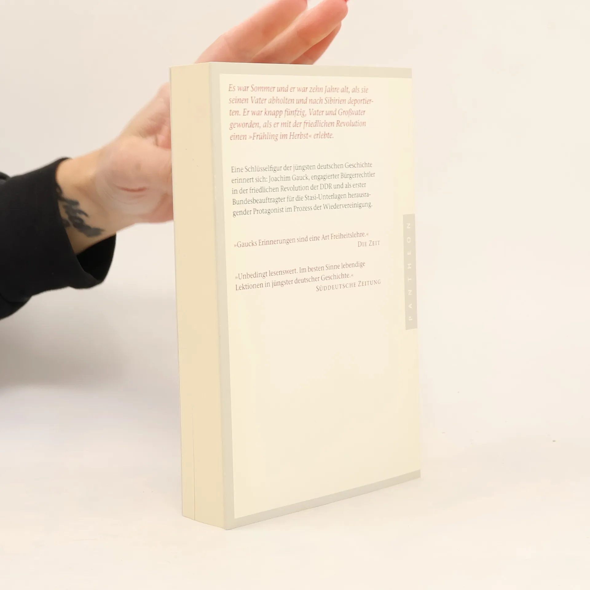Erinnerungen eines friedlichen Revolutionärs Joachim Gauck verlebte seine Kindheit in einem Dorf an der Ostseeküste. Später studierte er Theologie in Rostock und fand seinen Weg in die Kirche in Mecklenburg. Distanz zum DDR-System prägte seine Tätigkeit von Anfang an. Wie selbstverständlich wurde er Teil einer kritischen Bewegung und schließlich zu einer Symbolfigur im Umbruch von 1989. Nach dem Mauerfall übernahm Gauck politische Verantwortung, er wurde Abgeordneter im ersten freien Parlament der DDR und erster Bundesbeauftragter für die Stasi-Unterlagen. Der Kampf gegen das Vergessen und Verdrängen blieb als Redner und Kommentator sein großes Thema, auch als er nach zehn Jahren aus dem Amt ausschied.
