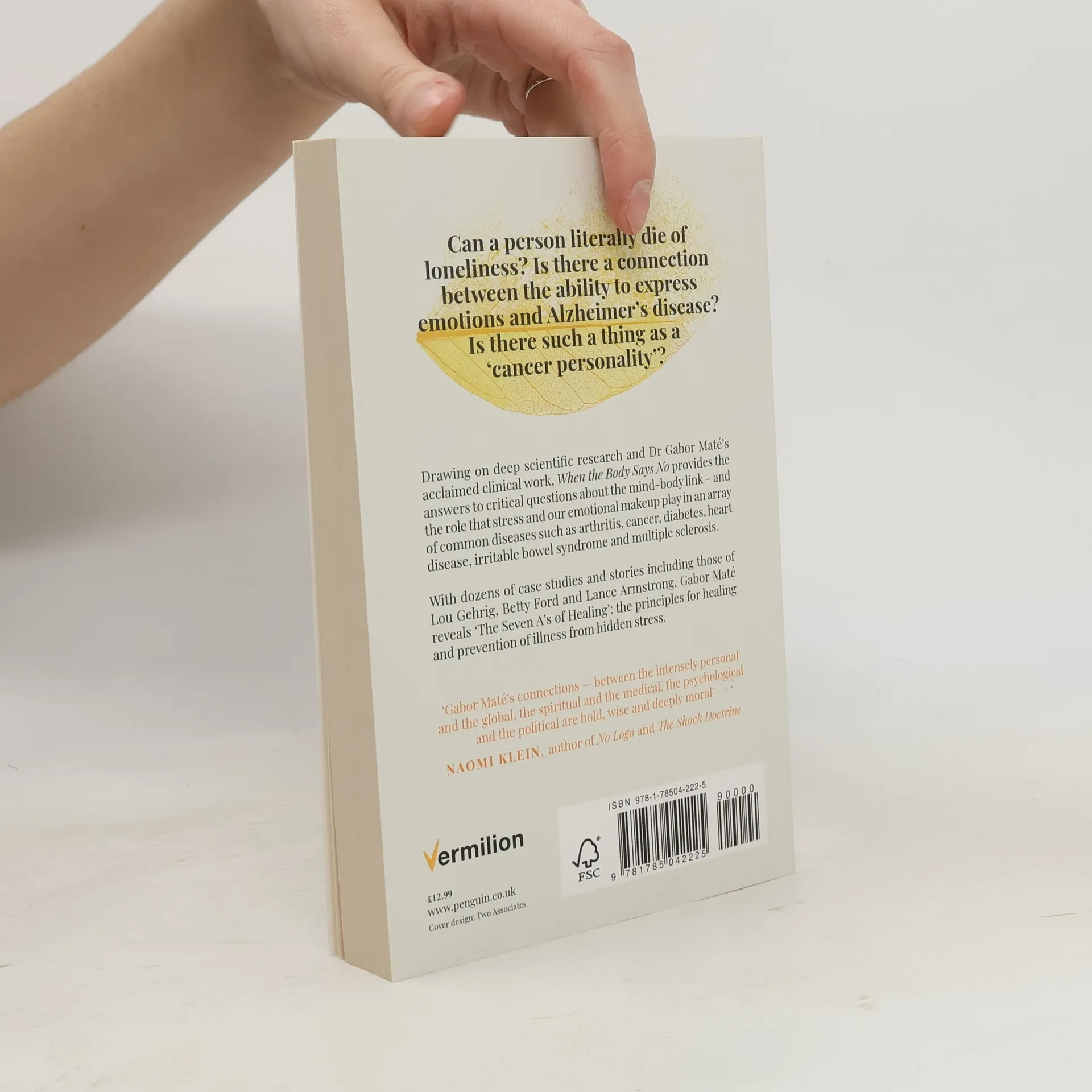 Can a person literally die of loneliness? Is there a connection between the ability to express emotions and Alzheimer?s disease? Is there such a thing as a 'cancer personality??Drawing on deep scientific research and Dr Gabor Mate?s acclaimed clinical work, When the Body Says Noprovides the answers to critical questions about the mind-body link - and the role that stress and our emotional makeup play in an array of common diseases.When the Body Says No-- Explores the role of the mind-body link in conditions and diseases such as arthritis, cancer, diabetes, heart disease, irritable bowel syndrome and multiple sclerosis. - Shares dozens of enlightening case studies and stories, including those of people such as Lou Gehrig (ALS), Betty Ford (breast cancer), Ronald Reagan (Alzheimer?s), Gilda Radner (ovarian cancer) and Lance Armstrong (testicular cancer)- Reveals 'The Seven A?s of Healing?- principles in healing and the prevention of illness from hidden stress
