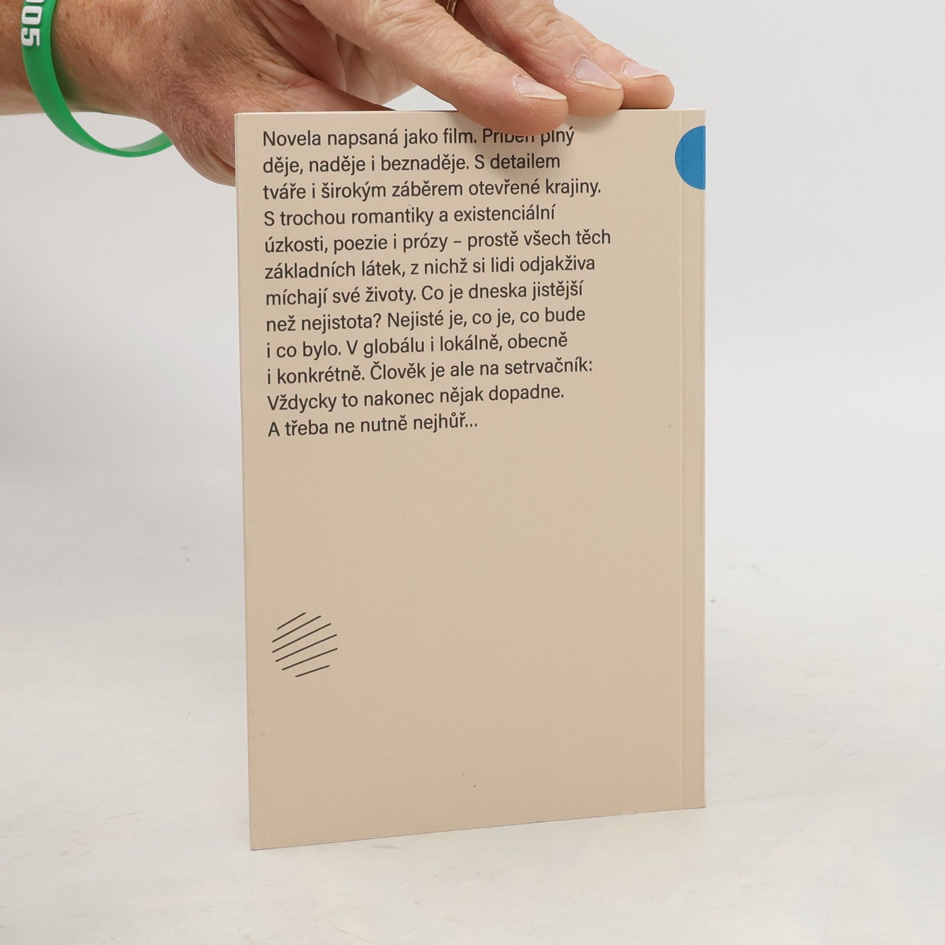 Novela napsaná jako film. Příběh plný děje, naděje i beznaděje. Příběh o jistotě a nejistotě s transsexualitou. S detailem tváře i širokým záběrem otevřené krajiny. S trochou romantiky a existenciální úzkosti, poezie i prózy - prostě všech těch základních látek, z nichž si lidi odjakživa míchají své životy. Co je dneska jistější než nejistota? Nejisté je, co je, co bude i co bylo. V globálu i lokálně, obecně i konkrétně. Člověk je ale na setrvačník: Vždycky to nakonec nějak dopadne. A třeba ne nutně nejhůř...