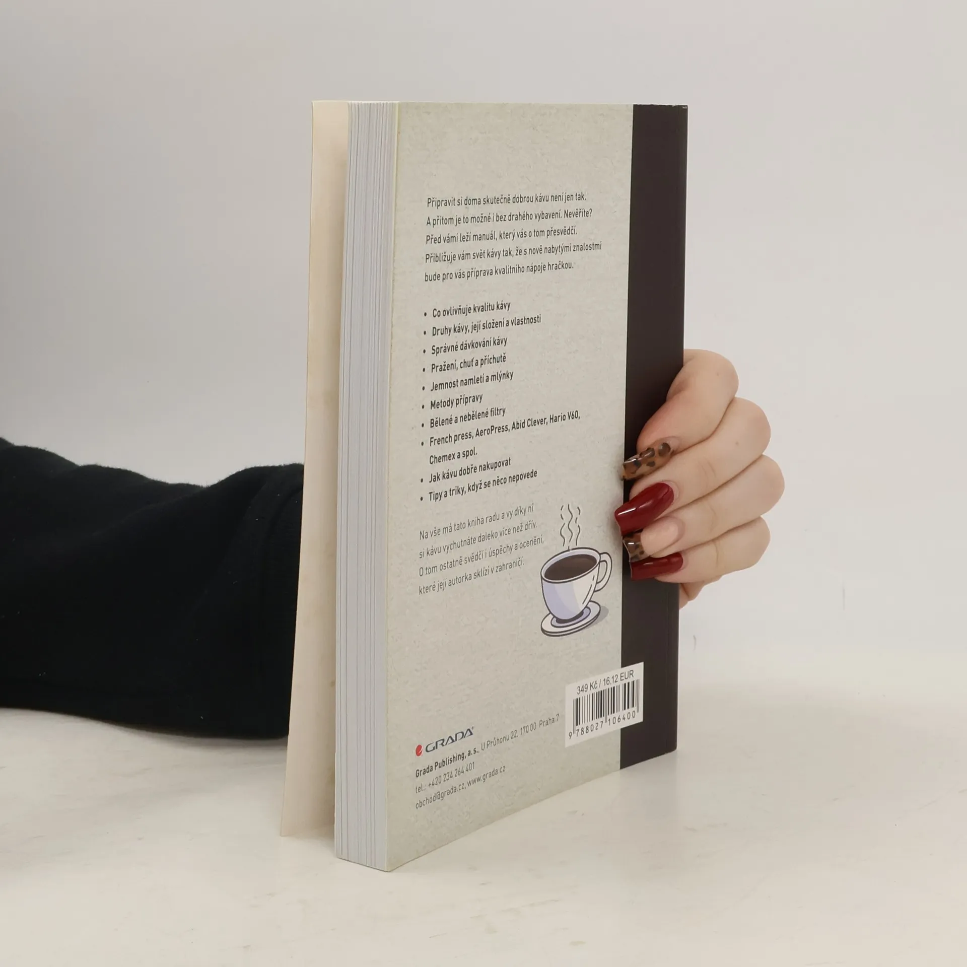 Autorka si s vysvětlováním, co všechno příprava chutné kávy obnáší, co je k tomu zapotřebí, dala neskutečnou práci a její výsledek stojí opravdu za to. O tom ostatně svědčí ohlasy a ocenění, které za knihu dostává. Dozvíte se například, co vše ovlivňuje kvalitu kávy, její sílu, hořkost, a naučíte se kávu správně kupovat, mlít, dávkovat, zalévat. Poučíte se o různých druzích kávy, které si můžete uvařit, a postupně se vyznáte v celé hitparádě nejrůznějších mlýnků, kávovarů, filtrů, konvic a dalších pomůcek, které nabízí náš trh. A nejen vyznat, vy se je naučíte i správně používat! Poznáte, jaké druhy kávy se pěstují, čím se od sebe navzájem odlišují, odkud se dovážejí. Budete umět rozlišovat jejich vlastnosti, aroma, chutě a příchutě. A na závěr se naučíte všelijaké triky, když se něco nepovede, uvařená káva je příliš slabá, nebo naopak příliš hořká, nebo se vám prostě povedlo koupit nekvalitní produkt. Na vše má tato kniha radu a vy díky ní budete mít požitek z pití kávy daleko větší než dříve.