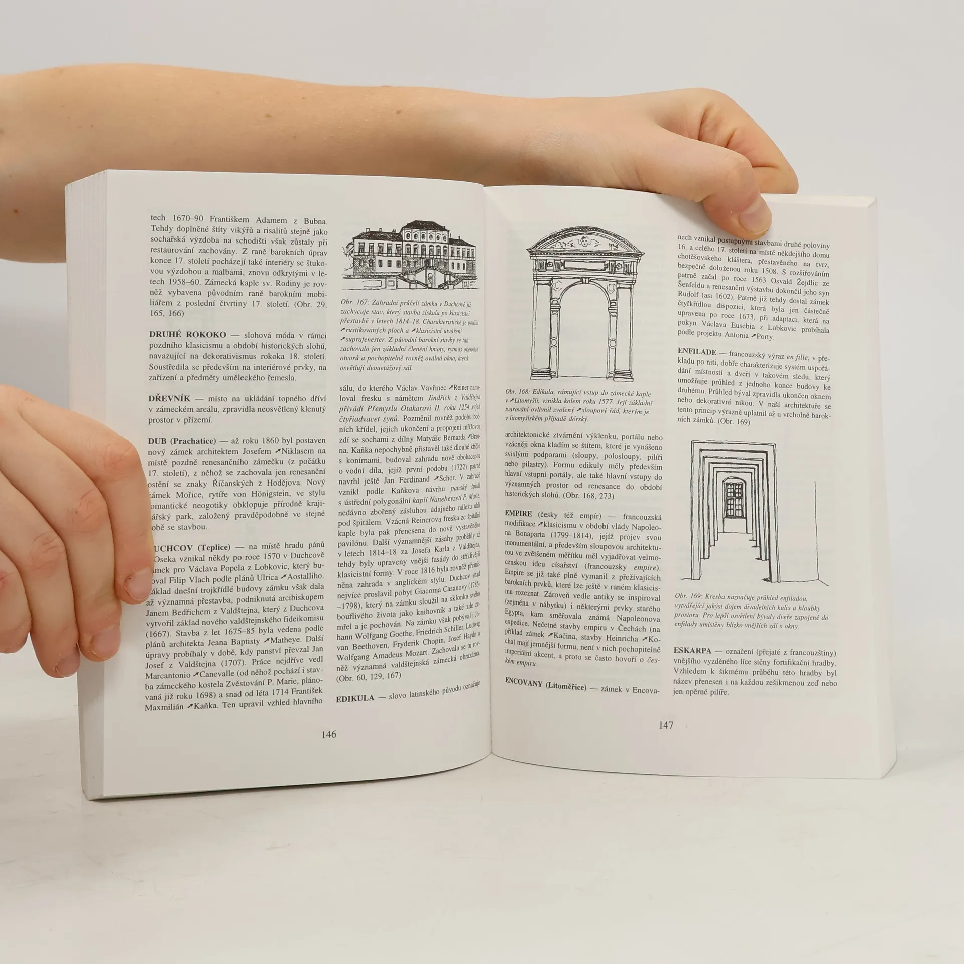 Již páté vydání zásadní práce včetně vůbec první ucelené studie o vývoji naší zámecké architektury, která přináší v esejisticky pojatých encyklopedických heslech jak lokality s nejvýznamnějšími zámeckými objekty Čech, ale také biografie předních domácích i cizích architektů spojených se zámky i zámeckými zahradami a přehled příslušné terminologie. Celkem na 550 hesel doprovází 335 ilustrací (stavby, půdorysy, architektonické detaily atd.).