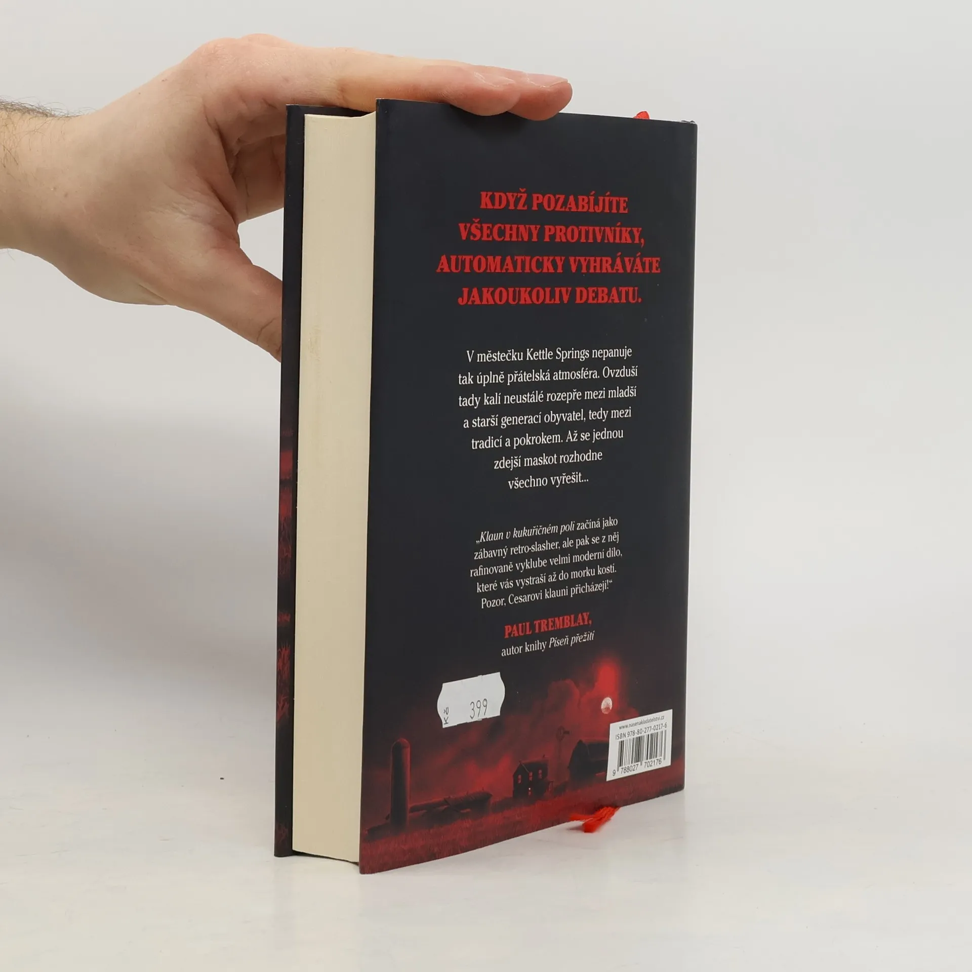 Tyhle děti rozhodně v pohodě nejsou. Quinn Maybrooková to chce jen dotáhnout k maturitě. Ale možná se nedožije ani příštího rána. Quinn se s otcem přestěhovala do malého městečka Kettle Springs, která má za maskota podivně vyhlížejícího klauna. Oba tu chtějí po tragické události začít nový život. Jenže od té doby, co své brány zavřela jediná místní továrna, to jde s městečkem čím dál tím víc z kopce. Většina jeho obyvatel se domnívá, že za všechno můžou puberťáci. Právě třeťáci a čtvrťáci z tamní střední školy koneckonců uspořádali mejdan, na němž zemřela dcera Arthura Hilla. Byli to oni, kdo zapálil továrnu. A jsou to oni, kdo tráví veškerý volný čas točením pitomých videí, jež pak dávají na YouTube. Chybí jim respekt a nemají ani tušení, co znamená tvrdá práce. Teenageři z Kettle Springs to ale vidí přesně naopak. Městečko tak vede nekončící bitvu mezi starým a novým pořádkem, mezi tradicí a pokrokem. Je to boj, který může skončit naprostou zkázou Kettle Springs. A proto se jeden vraždící klaun s kloboučkem a červeným kulatým nosem rozhodne, že tomu učiní přítrž. Protože když všechny své protivníky pozabíjíte, automaticky vyhráváte jakoukoliv debatu.