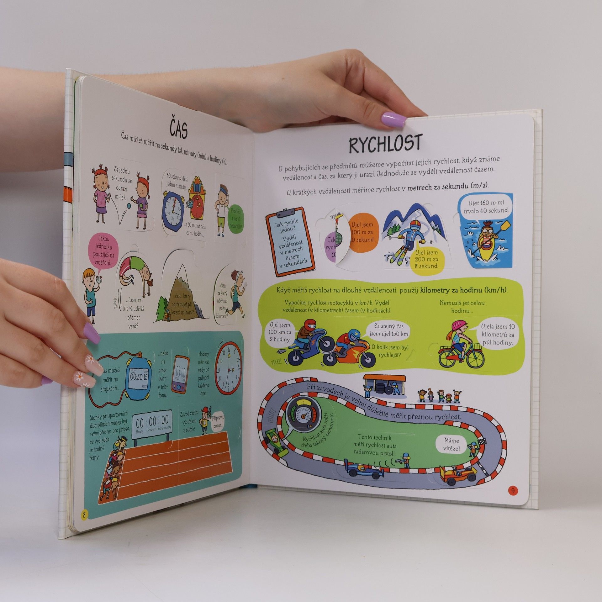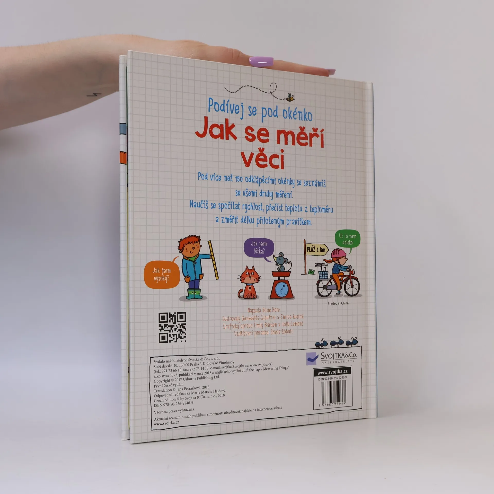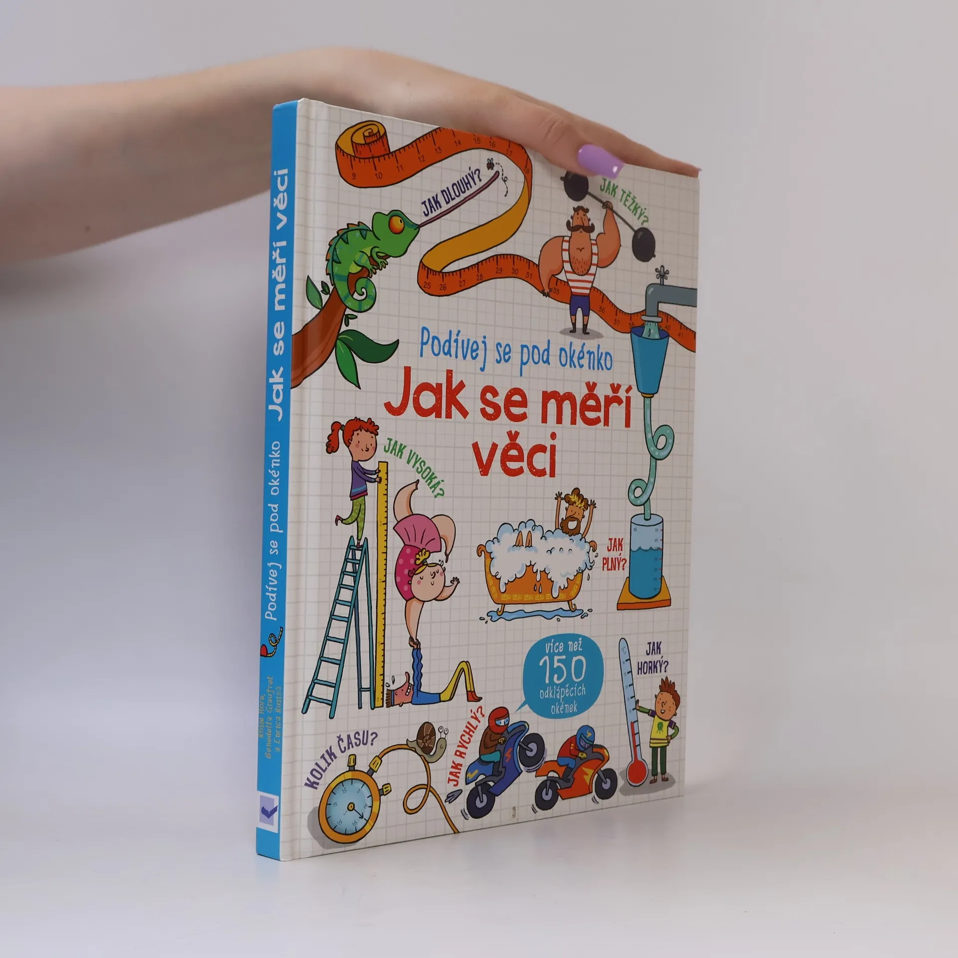 Lidé popisují věci kolem sebe různě – něco je malé, něco velké, jiné je těžké, lehké, rychlé, pomalé, studené či teplé. Ale co to vlastně znamená? Když chceš něco popsat přesně, musíš to změřit a vyjádřit ve správných jednotkách. V této knížce se díky odklápěcím okénkům dozvíš o druzích měření a nejrůznějších jednotkách vše podstatné. Víš, kde na světě používají kilometry a kde míle? Jaký je rozdíl mezi obsahem a objemem? Kdo a proč zvolal "Heuréka!" poté, co vyskočil z vany? Zjistíš, jak se díky vhodným předponám vyjadřují vzdálenosti obrovské (třeba k nejbližší hvězdě) i malinkaté (třeba šířka stěny bubliny). A víš, jak funguje tachometr a proč by ti stejné jednokilové závaží připadalo na Jupiteru těžší než na Zemi? Že ne? Tak rychle nahlédni pod okénko a zjisti, jak se věci měří.