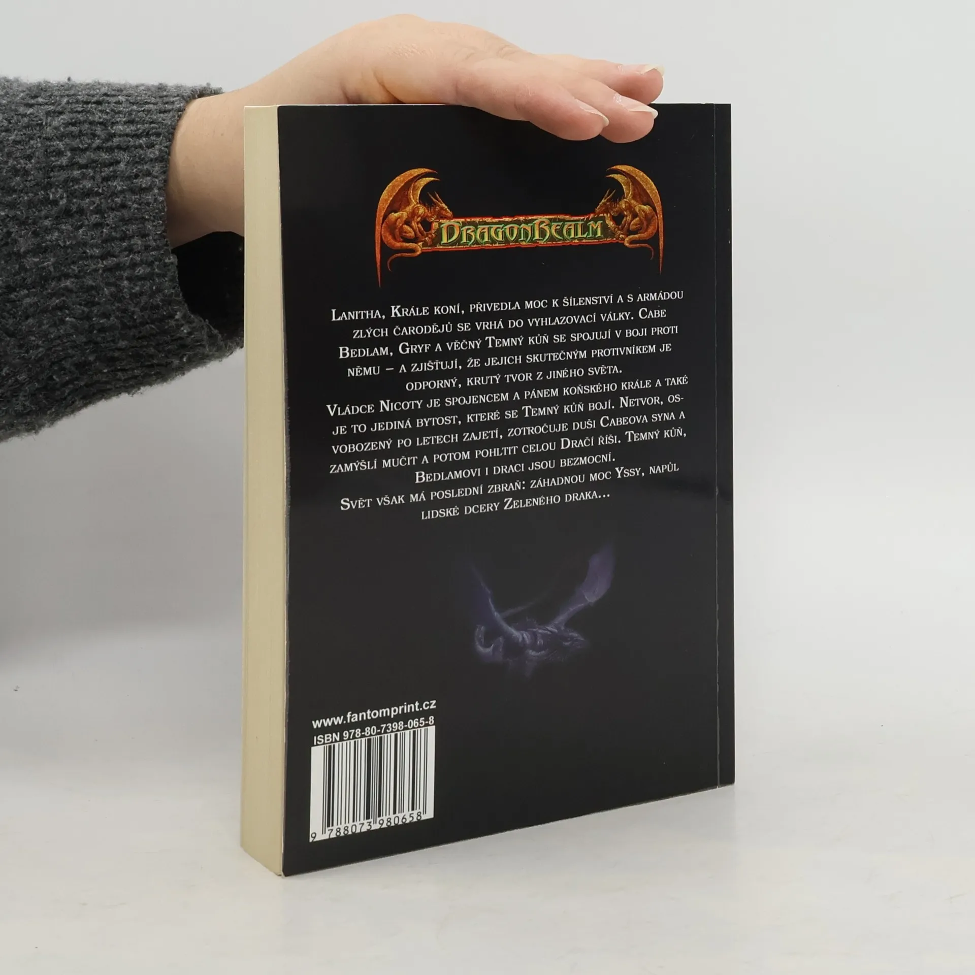 Lanitha, Krále koní, přivedla moc k šílenství a s armádou zlých čarodějů se vrhá do vyhlazovací války. Cabe Bedlam, Gryf a věčný Temný kůň se spojují v boji proti němu – a zjišťují, že jejich skutečným protivníkem je odporný, krutý tvor z jiného světa. Vládce Nicoty je spojencem a pánem koňského krále, a také je to jediná bytost, které se Temný kůň bojí. Netvor, osvobozený po celých věcích zajetí, zotročuje duši Cabeova syna a zamýšlí mučit a potom pohltit celou Dračí říši. Temný kůň, Bedlamovi i draci jsou bezmocní. Svět však má poslední zbraň: záhadnou moc Yssy, napůl lidské dcery Zeleného draka…