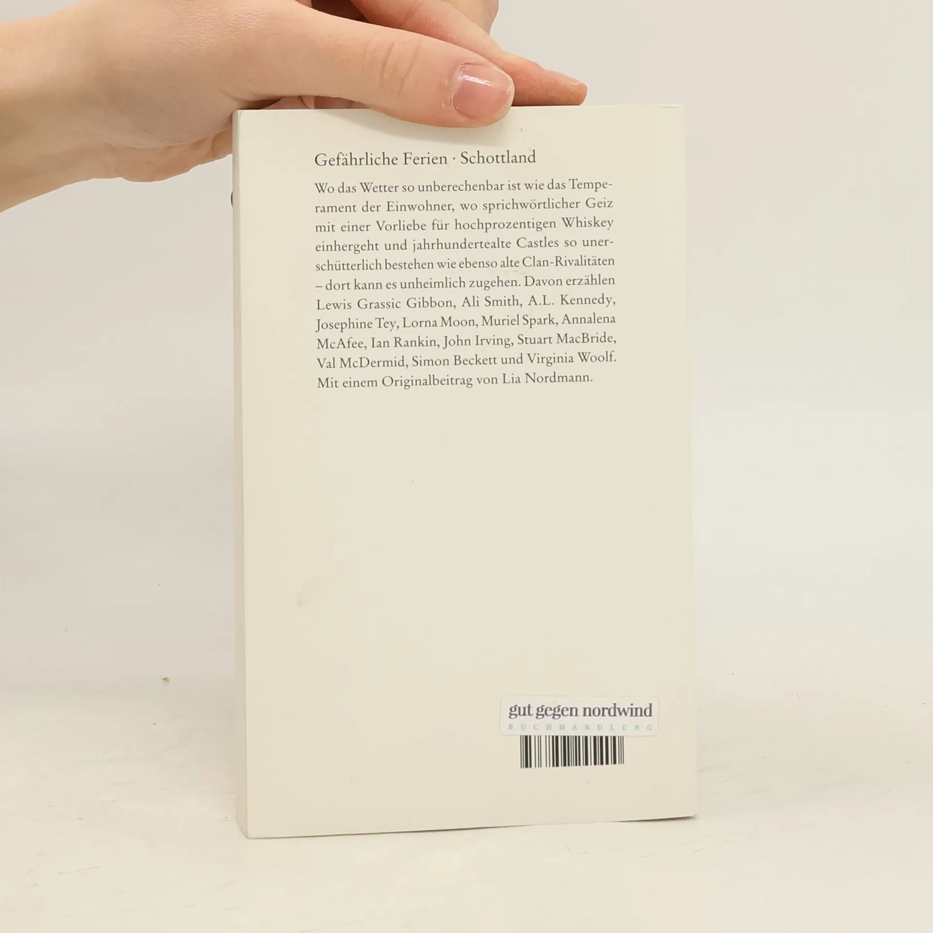 Wo das Wetter so unberechenbar ist wie das Temperament der Einwohner, wo sprichwörtlicher Geiz mit einer Vorliebe für hochprozentigen Whiskey einhergeht, dort kann es unheimlich zugehen. Davon erzählen Ian Rankin, John Irving, Muriel Spark, Annalena McAfee, Stuart MacBride, Val McDermid, Ali Smith, A. L. Kennedy, Simon Beckett und Virginia Woolf. Mit einem Originalbeitrag von Lia Nordmann.