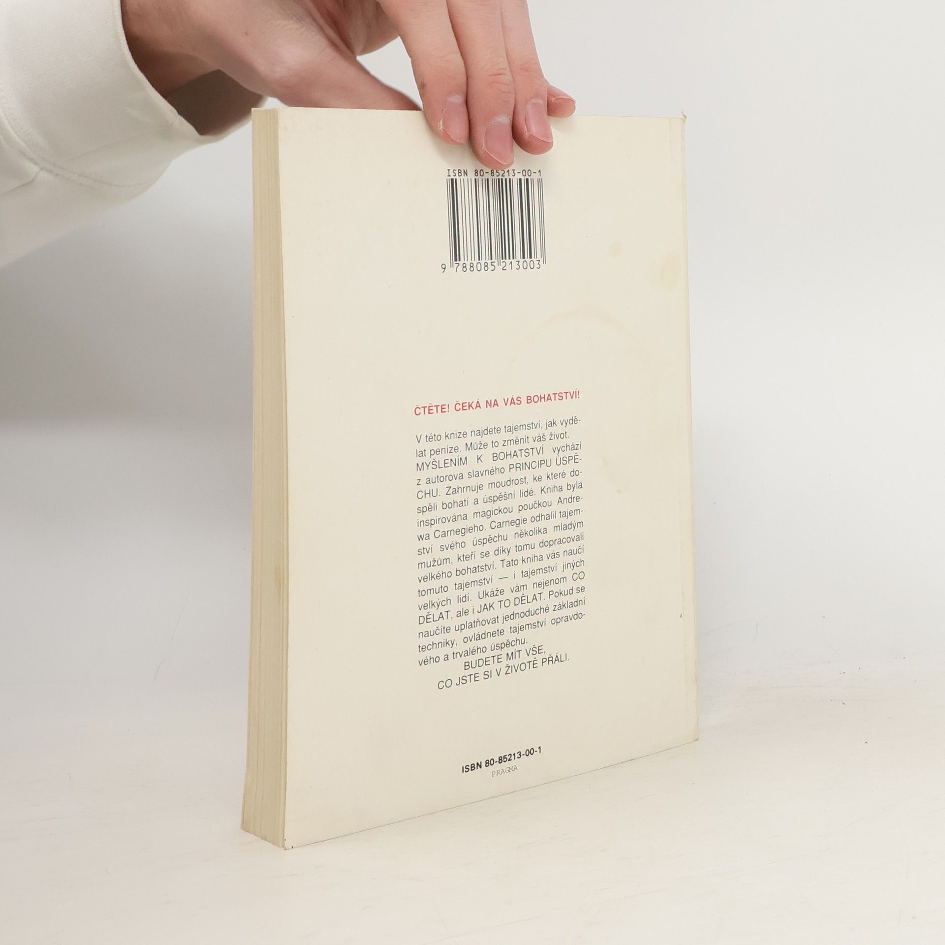 První vydání amerického bestselleru. Kniha nás naučí rozvíjet všechny dobré vlastnosti jako je vůle, rozhodnost, vytrvalost a pevný charakter. Je to návod na bohatství nejenom materiální, ale především bohatství vnitřní. Poukazuje na naše skryté kvality, na náš talent a podává návod, jak ho využít. Dozvíte se, jak si vytvořit správný okruh spolupracovníků, jak podnikat, jak začít, jak vytrvalostí dovést své záměry k úspěšnému konci. Všechno materiální má začátek v myšlence, to je základní idea této knihy od Napoleona Hilla. V této knize najdete tajemství, jak vydělat peníze. Může to změnit váš život. MYŠLENÍM K BOHATSTVÍ vychází z autorova slavného PRINCIPU ÚSPĚCHU. Zahrnuje moudrost, ke které dospěli bohatí a úspěšní lidé. Kniha byla inspirována magickou poučkou Andrewa Carnegieho. Carnegie odhalil tajemství svého úspěchu několika mladým mužům, kteří se díky tomu dopracovali velkého bohatství. Tato kniha vás naučí tomuto tajemství — i tajemství jiných velkých lidí. Ukáže vám nejenom CO DĚLAT, ale i JAK TO DĚLAT. Pokud se naučíte uplatňovat jednoduché základní techniky, ovládnete tajemství opravdového a trvalého úspěchu. BUDETE MÍT VŠE, CO JSTE SI V ŽIVOTĚ PŘÁLI.