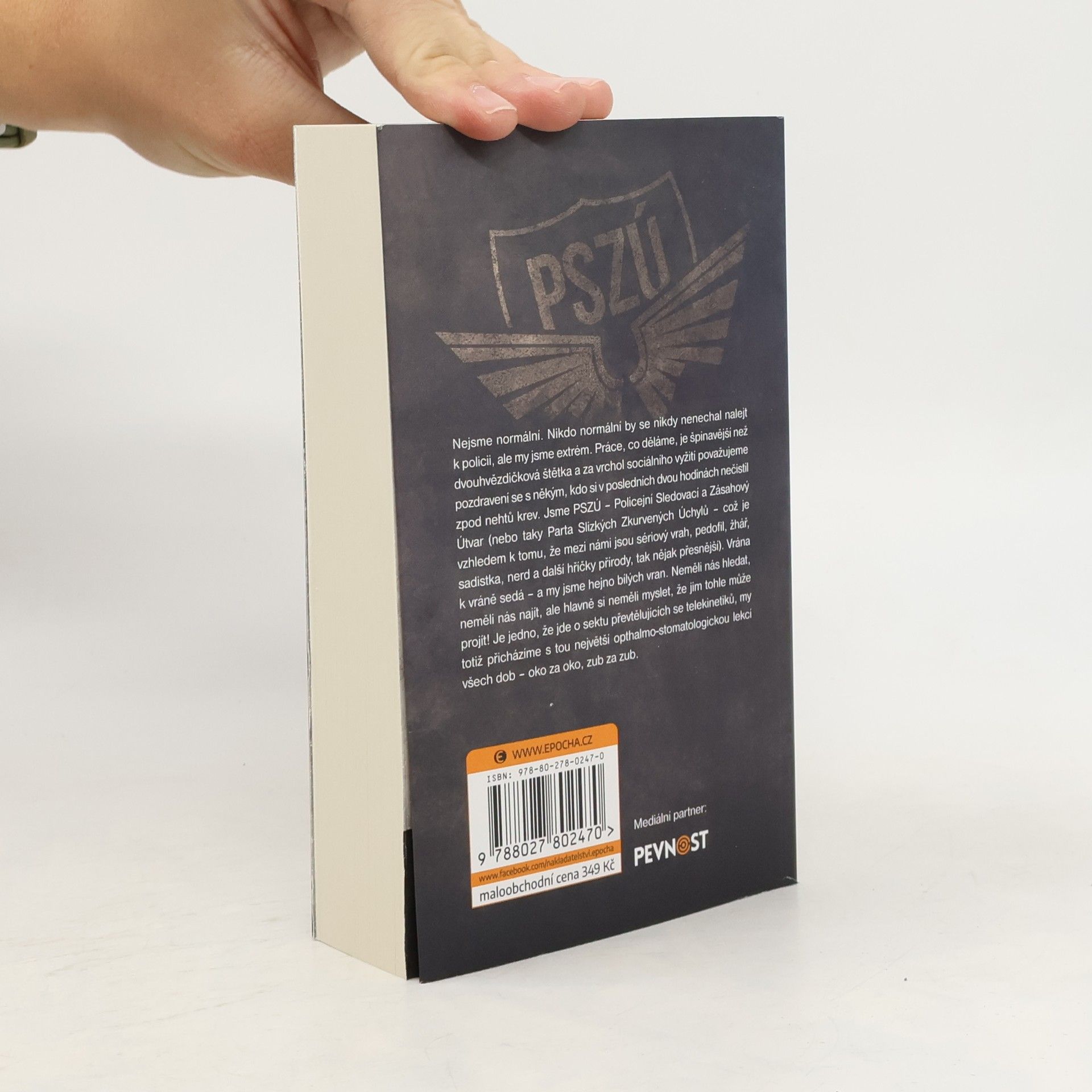 Nejsme normální. Nikdo normální by se nikdy nenechal nalejt k policii, ale my jsme extrém. Práce, co děláme, je špinavější než dvouhvězdičková štětka a za vrchol sociálního vyžití považujeme pozdravení se s někým, kdo si v posledních dvou hodinách nečistil zpod nehtů krev. Jsme PSZÚ – Policejní Sledovací a Zásahový Útvar (nebo taky Parta Slizkých Zkurvených Úchylů – což je vzhledem k tomu, že mezi námi jsou sériový vrah, pedofil, žhář, sadistka, nerd a další hříčky přírody, tak nějak přesnější). Vrána k vráně sedá – a my jsme hejno bílých vran. Neměli nás hledat, neměli nás najít, ale hlavně si neměli myslet, že jim tohle může projít! Je jedno, že jde o sektu převtělujících se telekinetiků, my totiž přicházíme s tou největší opthalmo-stomatologickou lekcí všech dob – oko za oko, zub za zub.