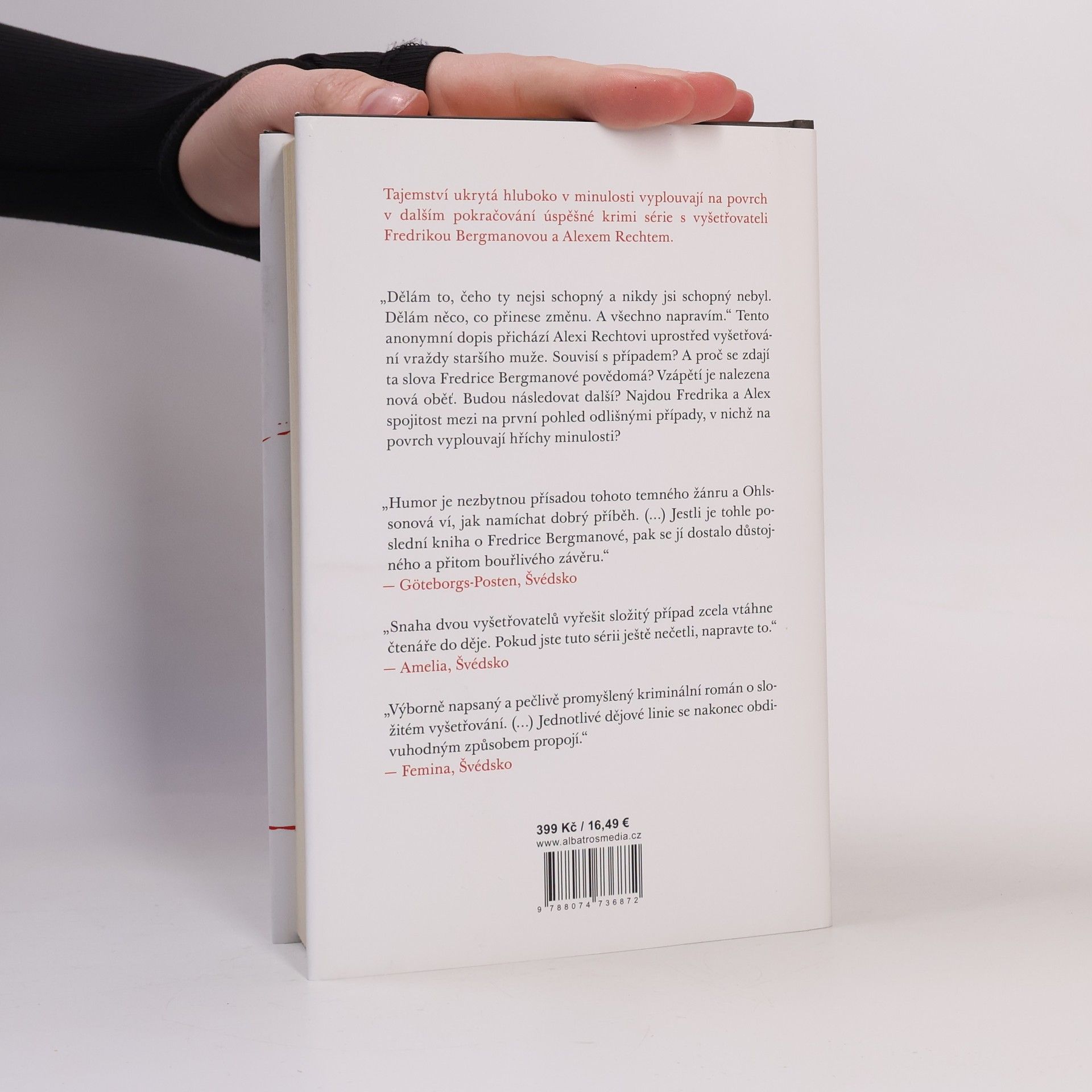 V křesle před krbem ve vlastním domě je nalezen postarší muž. V prsou mu zeje díra po kulce, na malíčku má z neznámého důvodu navlečený snubní prsten své dcery. V jiné části města se majitel pohřebního ústavu pokouší najít svého bratra, který nikomu jinému kromě něj očividně nechybí a který namísto plánovaného přesídlení do Austrálie možná zmizel navždy. Ve stejnou dobu se zoufalá žena usilovně snaží neztratit kontrolu nad vlastním životem, zatímco se z jejího muže stává čím dál nebezpečnější člověk. Času už moc nezbývá a ochránit sebe a své děti pro ni začíná být nadlidský úkol. Když Fredrika Bergmanová a Alex Recht mezi těmito na první pohled odlišnými případy odhalí spojitost, ocitají se v kruhu stop úzce souvisejících s hříchy z minulosti. Alexovi chodí anonymní dopisy od člověka, který by rád ve všem zjednal pořádek. Kdo za dopisy stojí a proč je pachatel očividně vždy o krok napřed? Potopa, šestá kniha z krimi série o Fredrice Bergmanové a Alexi Rechtovi, přináší napínavý příběh, v němž to, co bylo dosud skryto, znovu vyplouvá na povrch.