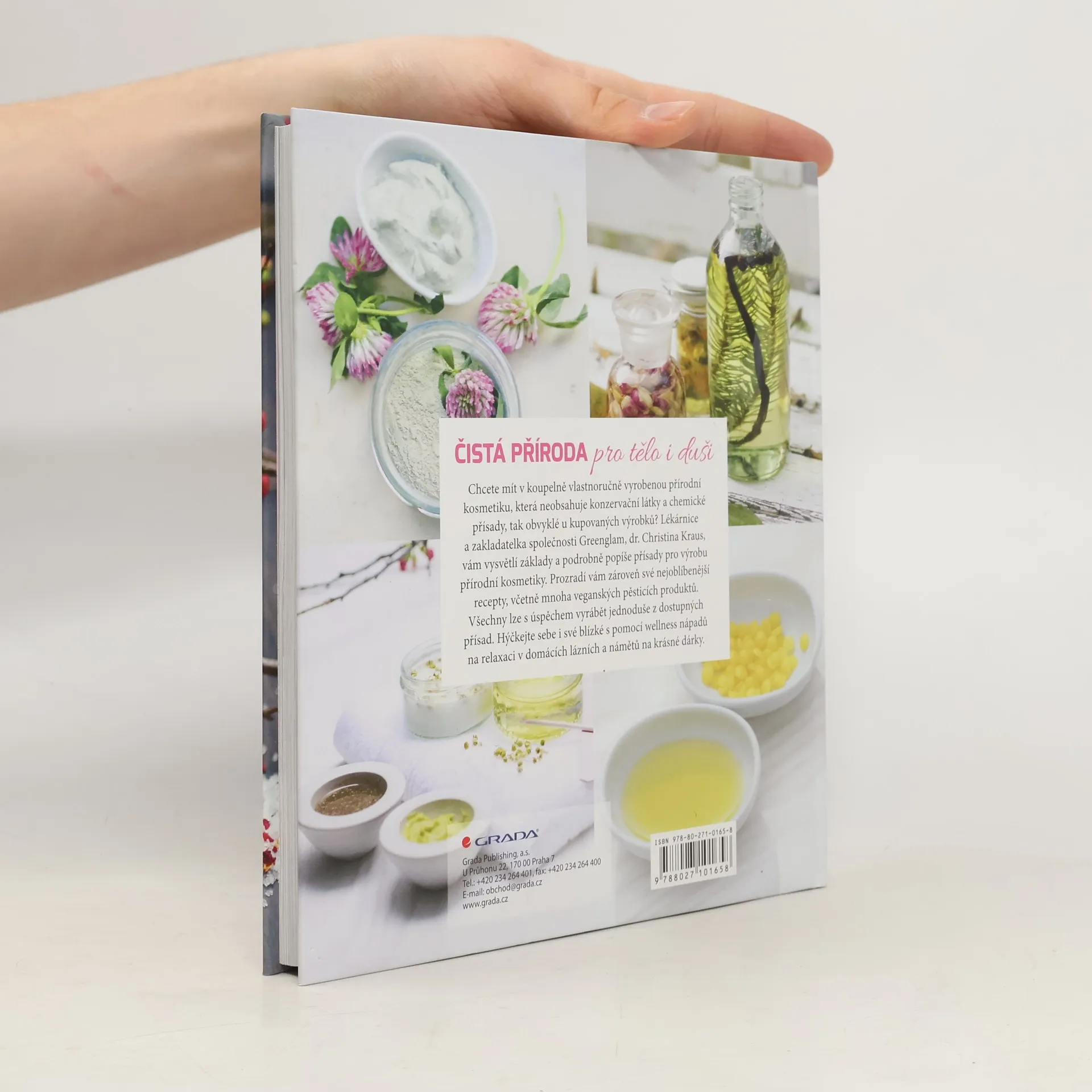 Víte, že máte doma ve své koupelně věci, které vašemu zdraví zrovna neprospívají? A co pleťová voda, zubní pasta, šampon, sprchový gel, tělové mléko, deodorant, parfém, pleťový krém, make-up, oční stíny, rtěnka atd. atd., prostě všechno to, co zejména ženy každý den používají pro svou krásu a pocit svěžesti a kupují v obchodech? Ten seznam je hodně dlouhý a velká část oněch produktů obsahuje škodlivé, dokonce jedovaté látky, jako je formaldehyd, triclosan nebo parabeny. Sice v malých dávkách, ale dlouhodobé používání se může na vašem zdraví odrazit... Není proto čas na změnu? Autorka této krásné knihy plné úžasných receptů a rad k tomuto názoru dospěla také... Představte si koupelnu plnou vůní a produktů, které jste si vyrobili sami z přírodních, volně dostupných zdrojů. Proč nevyužít různých bylinek, květů, medu, rostlinných olejů, bambuckého másla, kávových zrn, mléčných produktů jako je přírodní jogurt atd... Spolu s know-how, které vám autorka receptů nezištně prozrazuje, pomůžete svému tělu i duši.