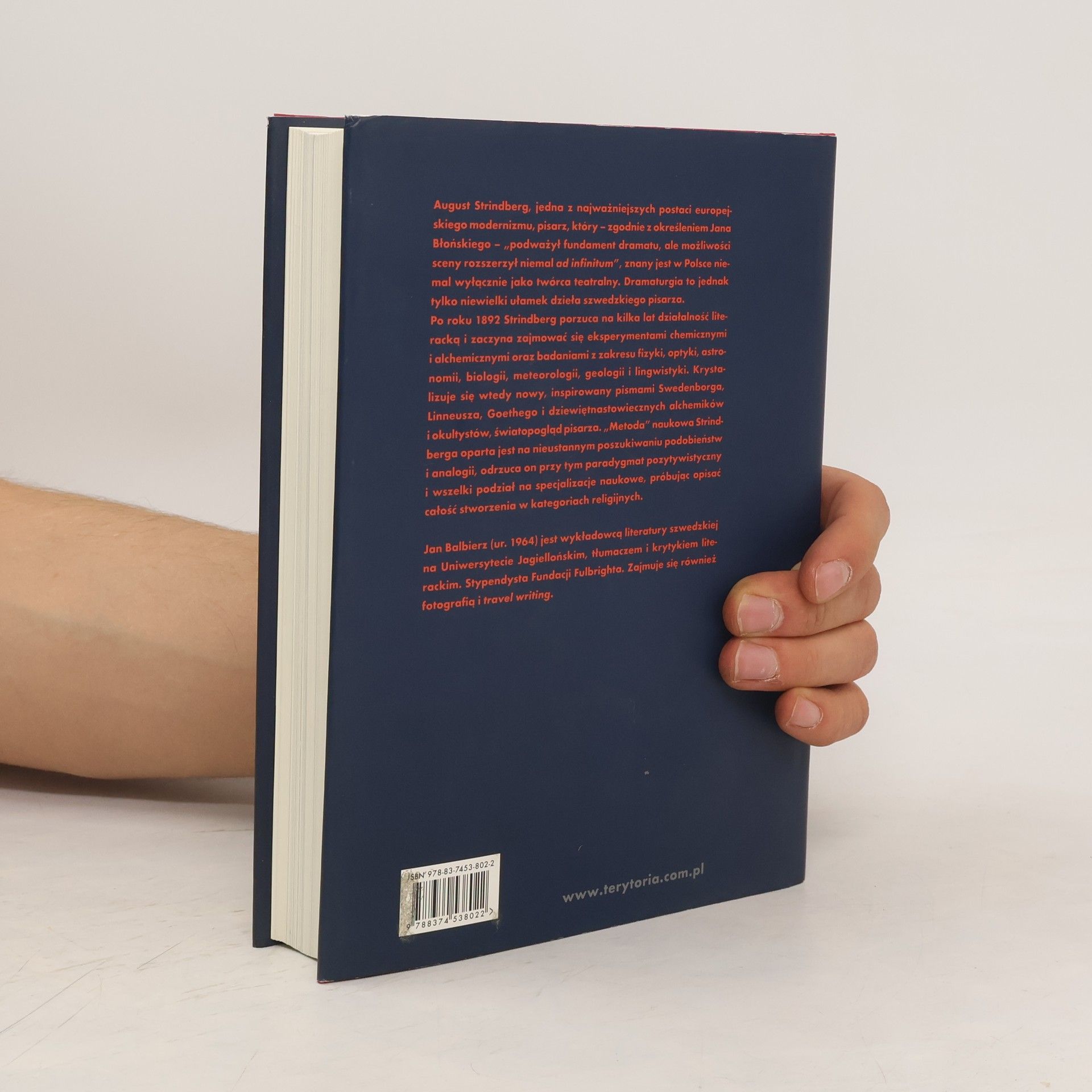 August Strindberg, jedna z najważniejszych postaci europejskiego modernizmu, pisarz, który – zgodnie z określeniem Jana Błońskiego – „podważył fundament dramatu, ale możliwości sceny rozszerzył niemal ad infinitum”, znany jest w Polsce niemal wyłącznie jako twórca teatralny. Dramaturgia to jednak tylko niewielki ułamek dzieła szwedzkiego pisarza. Po roku 1892 Strindberg porzuca na kilka lat działalność literacką i zaczyna zajmować się eksperymentami chemicznymi i alchemicznymi oraz badaniami z zakresu fizyki, optyki, astronomii, biologii, meteorologii, geologii i lingwistyki. Krystalizuje się wtedy nowy, inspirowany pismami Swedenborga, Linneusza, Goethego i dziewiętnastowiecznych alchemików i okultystów, światopogląd pisarza. „Metoda” naukowa Strindberga oparta jest na nieustannym poszukiwaniu podobieństw i analogii, odrzuca on przy tym paradygmat pozytywistyczny i wszelki podział na specjalizacje naukowe, próbując opisać całość stworzenia w kategoriach religijnych.