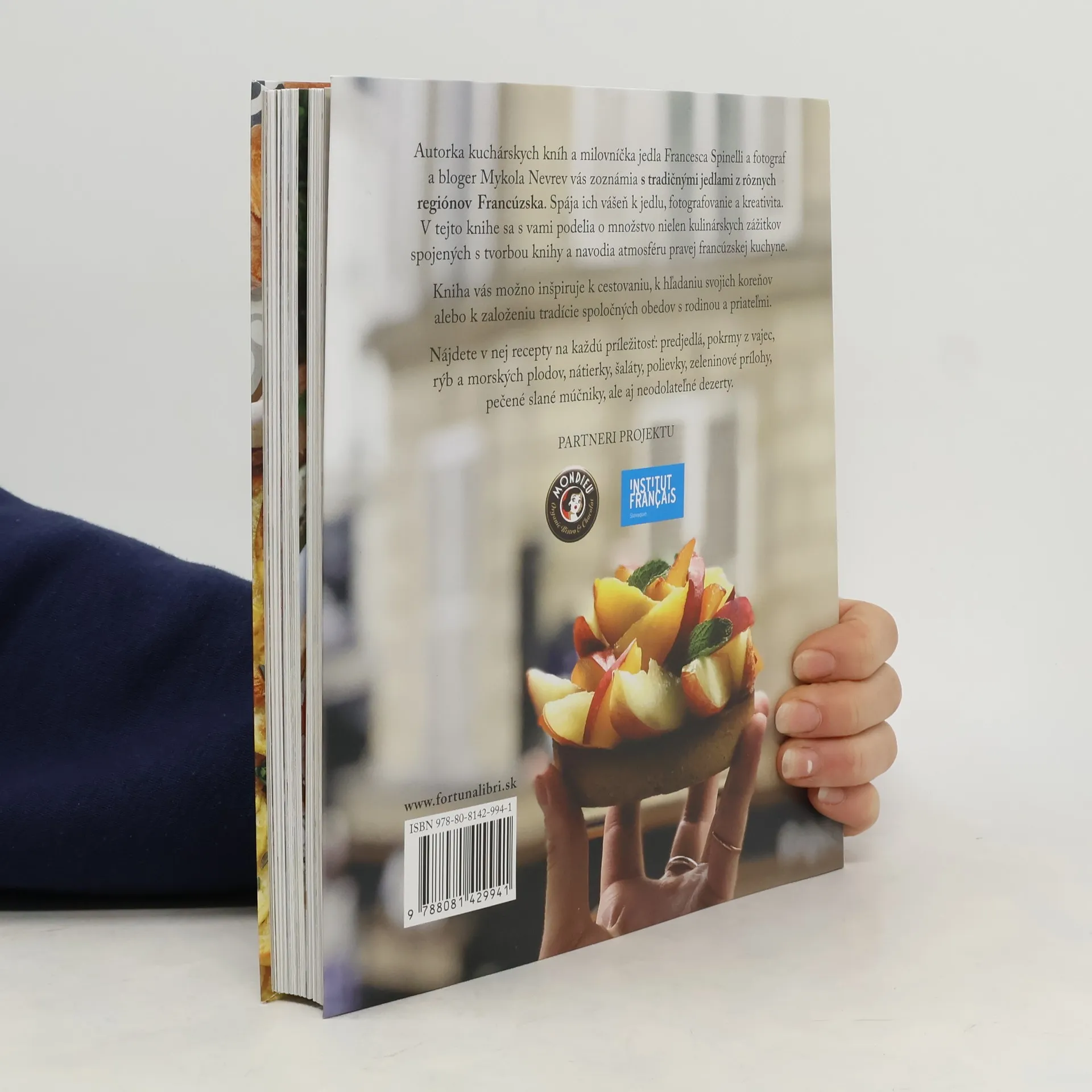 Autorka kuchárskych kníh a milovníčka jedla Francesca Spinelli a fotograf a bloger Mykola Nevrev vás zoznámia s tradičnými jedlami z rôznych regiónov Francúzska. Spája ich vášeň k jedlu, fotografovanie a kreativita. V tejto knihe sa s vami podelia o množstvo nielen kulinárskych zážitkov spojených s tvorbou knihy a navodia atmosféru pravej francúzskej kuchyne.Kniha vás možno inšpiruje k cestovaniu, hľadaniu svojich koreňov alebo k založeniu novej tradície spoločných obedov s rodinou a kamarátmi. Nájdete v nej recepty na každú príležitosť: predjedlá, pokrmy z vajec, rýb a morských plodov, nátierky, šaláty, polievky, zeleninové prílohy, pečené slané múčniky, ale aj neodolateľné dezerty.