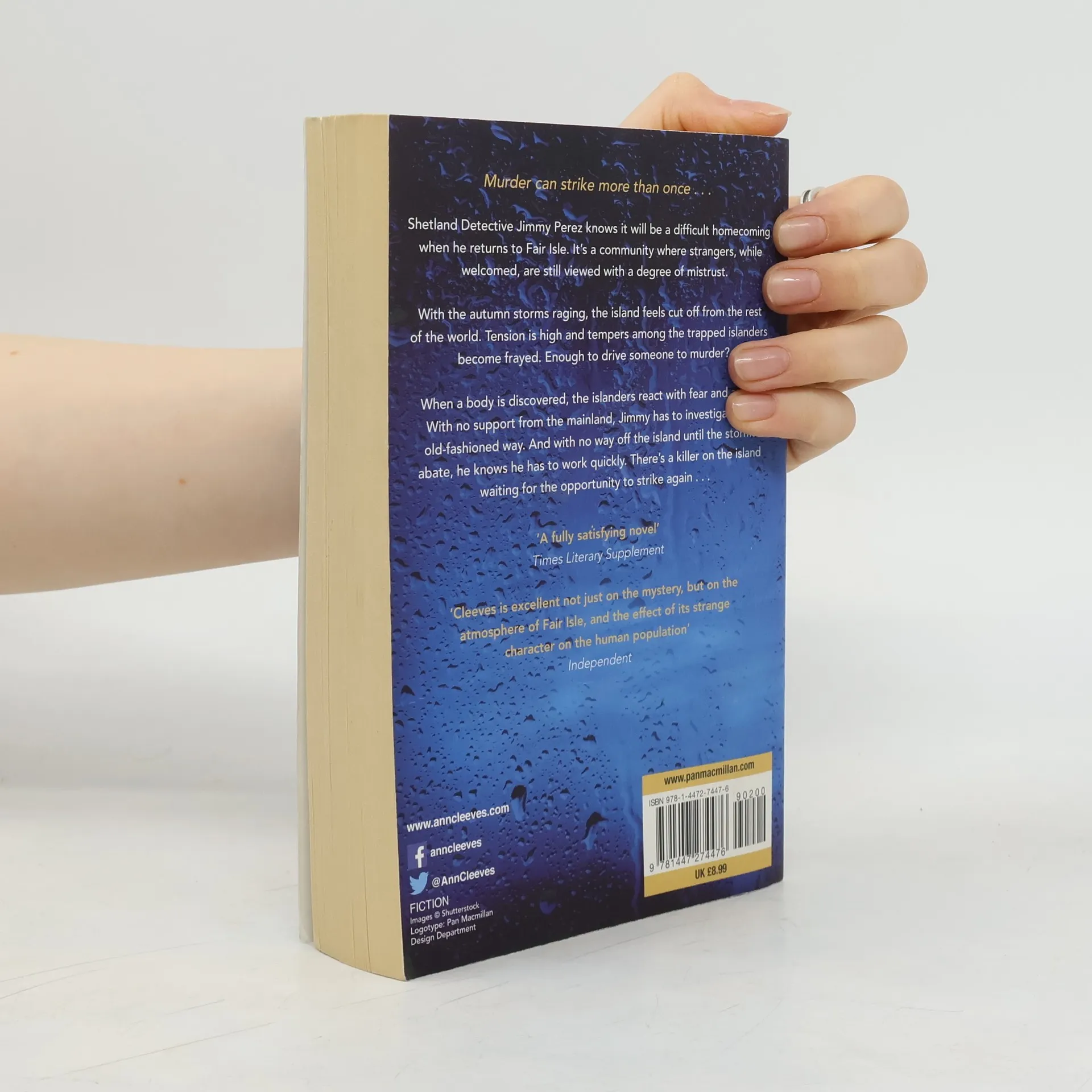 Fair Isle feels cut off from the rest of the world because of storms, when a woman's body is discovered at a bird observatory, with feathers threaded through her hair. Detective Jimmy Perez has no support from the mainland and must investigate the old-fashioned way