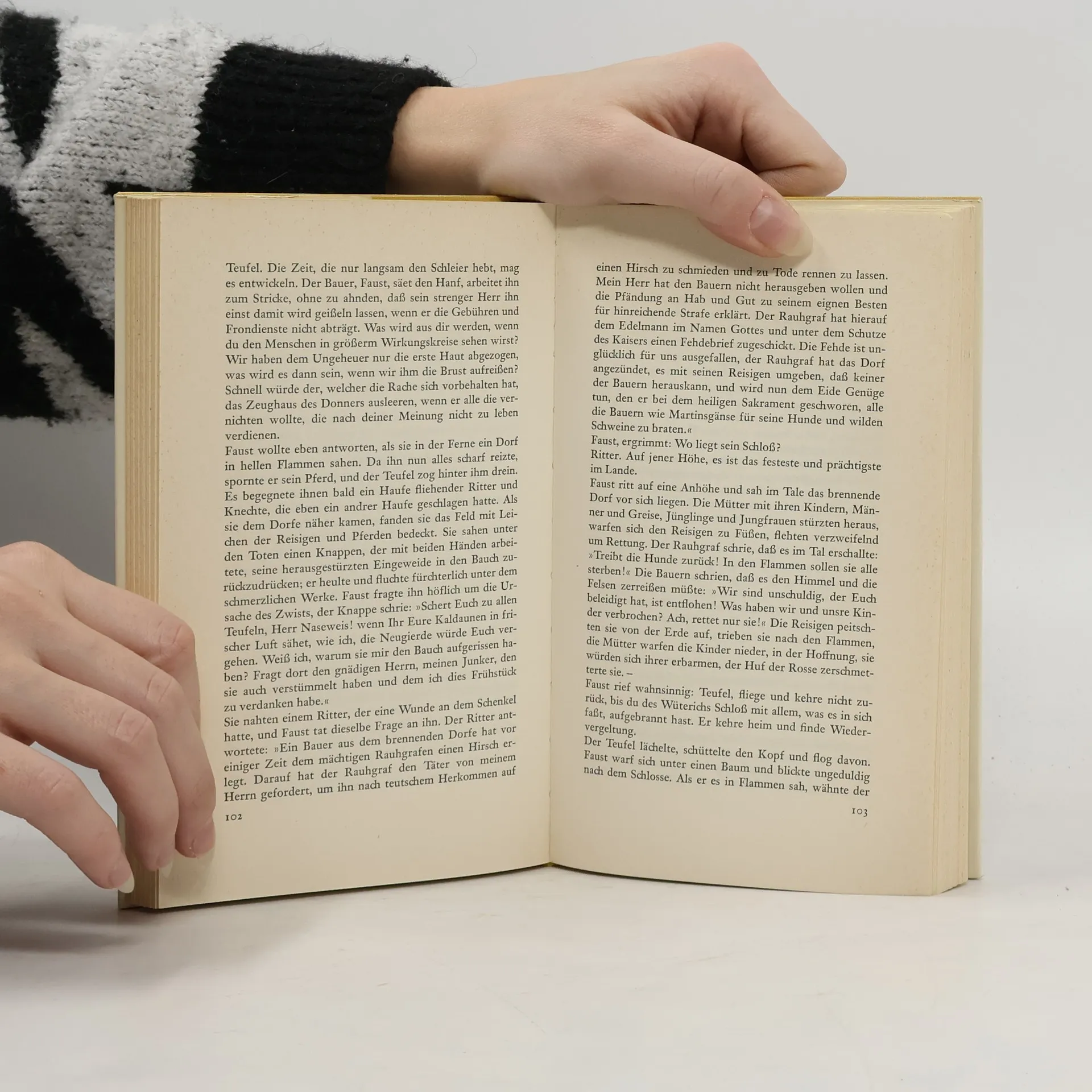 Faust kämpft mit den komplexen Fragen der Metaphysik, Moral und Theologie, ohne eine klare Antwort zu finden. Frustriert wendet er sich der Magie zu, in der Hoffnung, die Geheimnisse der Natur zu ergründen. Seine ersten Entdeckungen umfassen die Erfindung des Buchdrucks und eine furchtbare Formel, um den Teufel herbeizurufen und ihm zu dienen. Trotz seines Wissens und seiner Fähigkeiten zögert er, diesen gefährlichen Schritt zu wagen, da er seine unsterbliche Seele nicht leichtfertig aufs Spiel setzen möchte. In diesem Moment steht er in der Blüte seines Lebens.