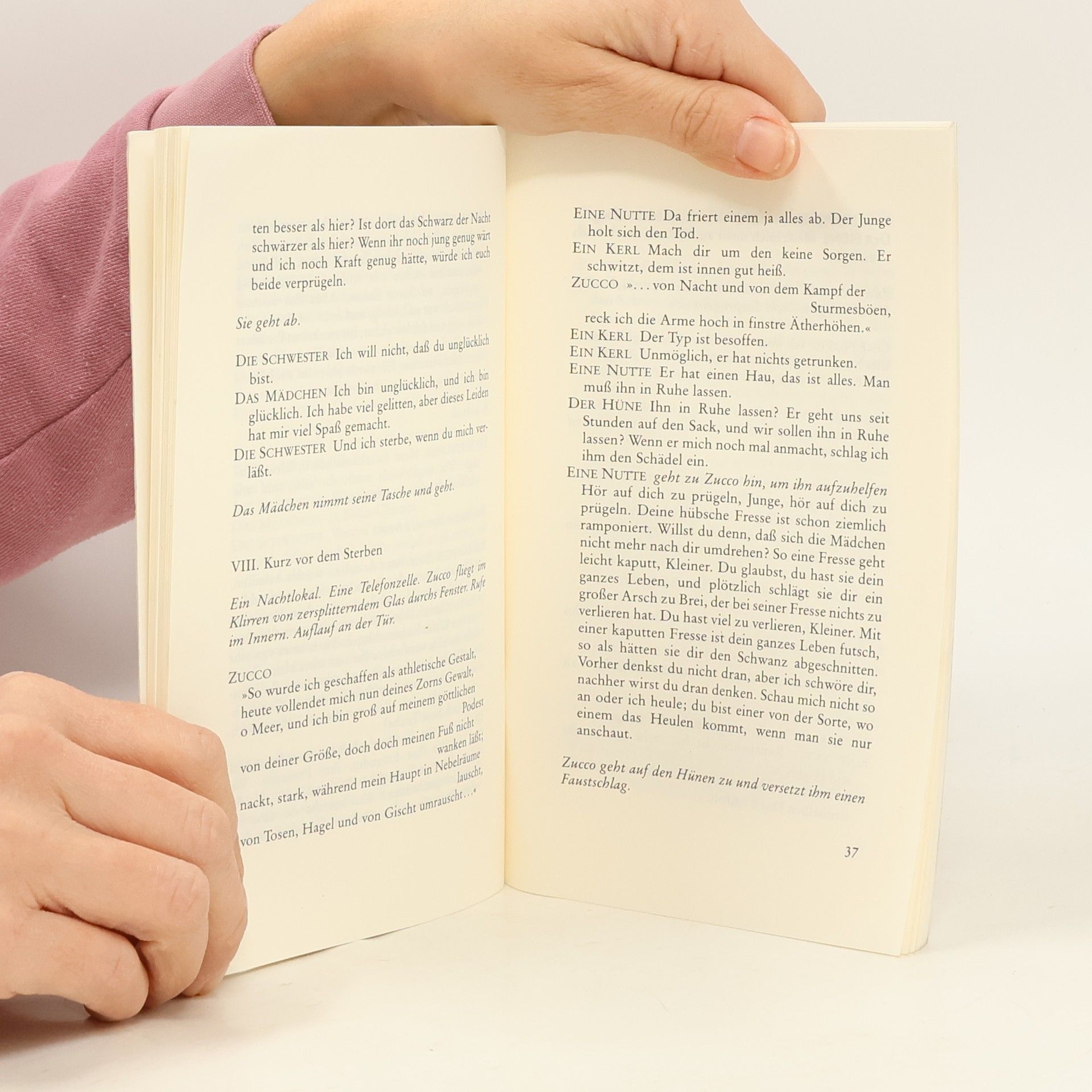 Das letzte, nachgelassene Theaterstück des früh verstorbenen französischen Autors: Roberto Zucco ist ein mehrfacher Mörder. Aber er mordet weder aus Not noch aus Leidenschaft, weder ist er ein Räuber noch ist er ein Rächer: "Ich habe keine Feinde, und ich greife nicht an. Ich zerquetsche die anderen Tiere nicht aus Bosheit, sondern weil ich sie nicht gesehen habe und weil ich auf sie getreten bin." Im Anhang ist Koltès' Einakter TABATABA erstmalig auf deutsch abgedruckt: Anstatt sich, wie alle anderen, in den Straßen Tabatabas zu vergnügen, bleiben Petit Abou und seine ältere Schwester Maïmouna zuhause und ergehen sich in Vorwürfen: über ihr verpfuschtes Leben und die Schande, den Erwartungen - den eigenen wie denen anderer - nicht gerecht zu werden.