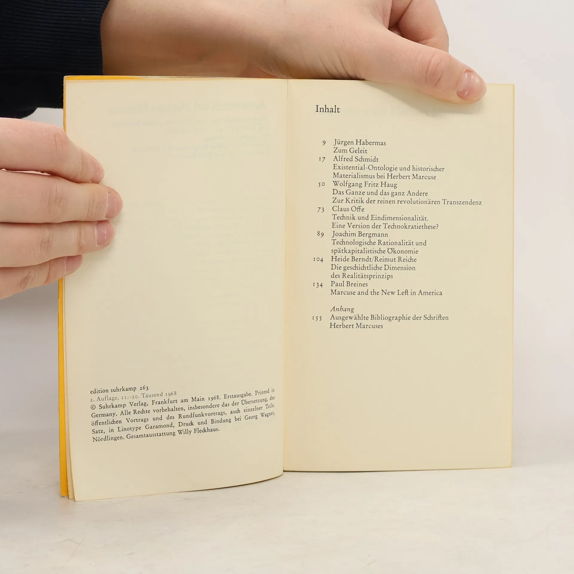 Antworten auf Herbert Marcuse. Herausgegeben von Jürgen Habermas, AA.VV.