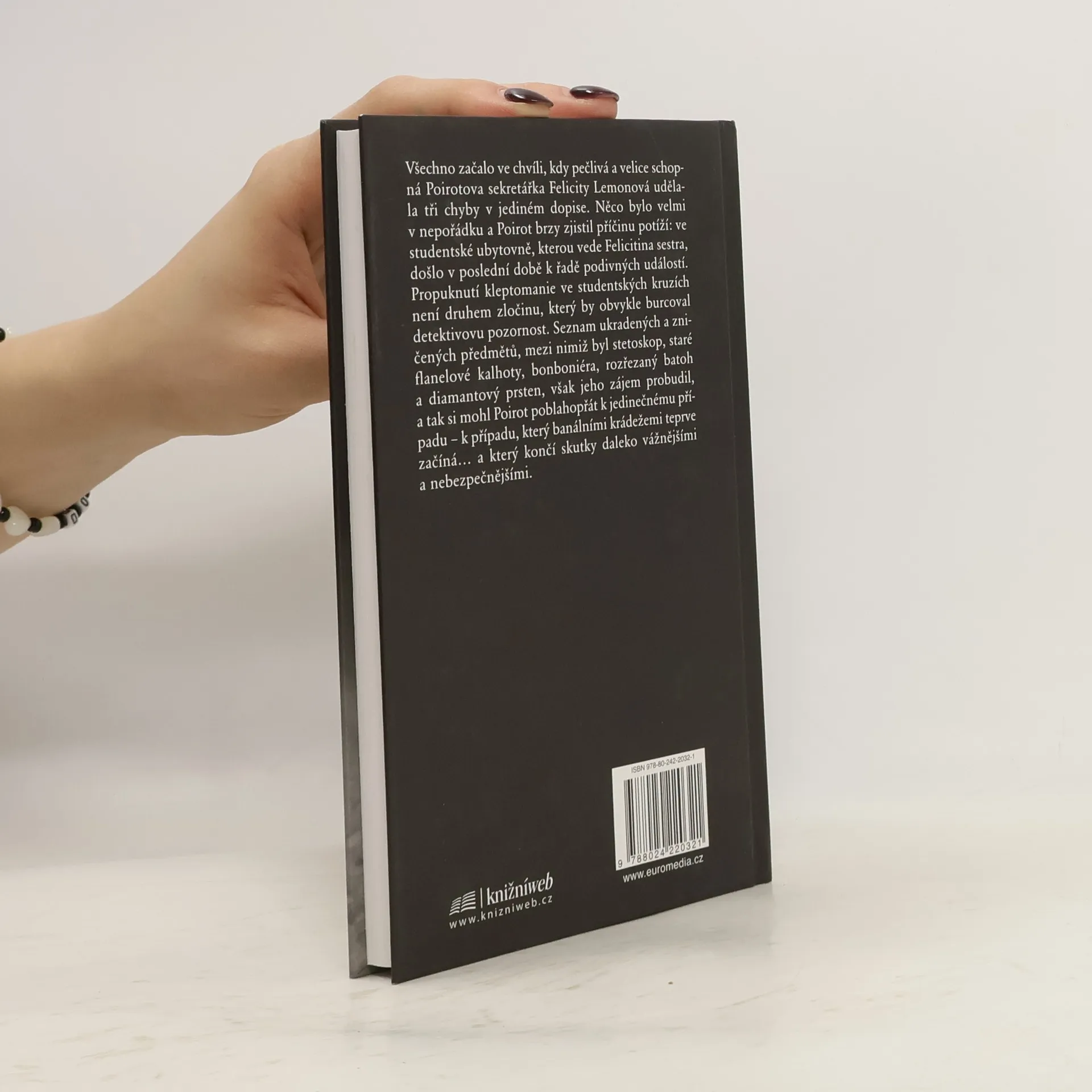Všechno začalo ve chvíli, kdy málo půvabná, zato velice schopná sekretářka Hercula Poirota udělala tři chyby v jediném dopise. Něco bylo velmi v nepořádku. Poirot brzy zjistil příčinu potíží. Sestra jeho sekretářky vedla studentskou ubytovnu v Hickory Road, kde v poslední době došlo k řadě podivných událostí. Propuknutí kleptomanie ve studentské ubytovně není druhem zločinu, jenž by obvykle budil Poirotovu pozornost. Seznam ukradených a zničených předmětů, mezi nimiž se nacházel stetoskop, staré flanelové kalhoty, bonboniéra, rozřezaný batoh a diamantový prsten nalezený v talíři polévky, však jeho zájem upoutal. Poblahopřál správkyni ubytovny, paní Hubbardové, k jedinečné, nádherné záhadě. Seznam nedával žádný smysl. Poirot si však kladl otázku, proč jsou všichni tak vyděšení, jestliže jde pouze o dílo drobného zlodějíčka. Jeho nejhorší obavy se však záhy potvrdily.
