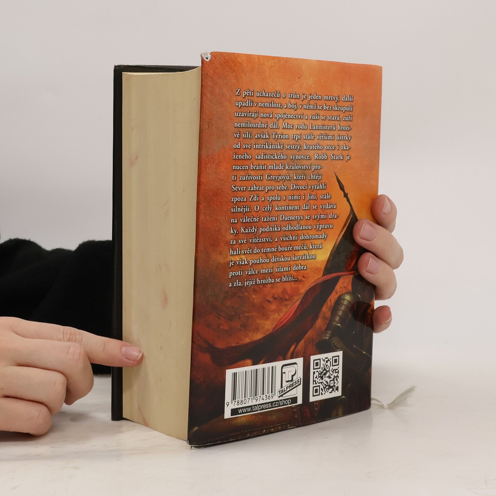Z pěti uchazečů o trůn je jeden mrtvý, další upadli v nemilost, a boj, v němž jsou bez skrupulí uzavírána nová spojenectví a rušena stará, zuří nemilosrdně dál. Moc rodu Lannisterů hrozivě sílí, avšak Tyrion trpí stále většími ústrky od své intrikánské sestry, krutého otce i zkaženého sadistického synovce. Robb Stark je nucen bránit mladé království proti zuřivosti Greyjoyů, kteří si chtějí Sever zabrat pro sebe. Divocí vytáhli zpoza Zdi a spolu s nimi nabývají na síle Jiní. O celý kontinent dál se vydává na válečné tažení Daenerys a její draci nebezpečně rostou.Každý podniká odhodlanou výpravu za své vítězství, a všichni dohromady halí svět do temné bouře mečů, která je však pouhou dětskou šarvátkou ve srovnání s válkou mezi silami dobra a zla, jejíž hrozba se blíží…