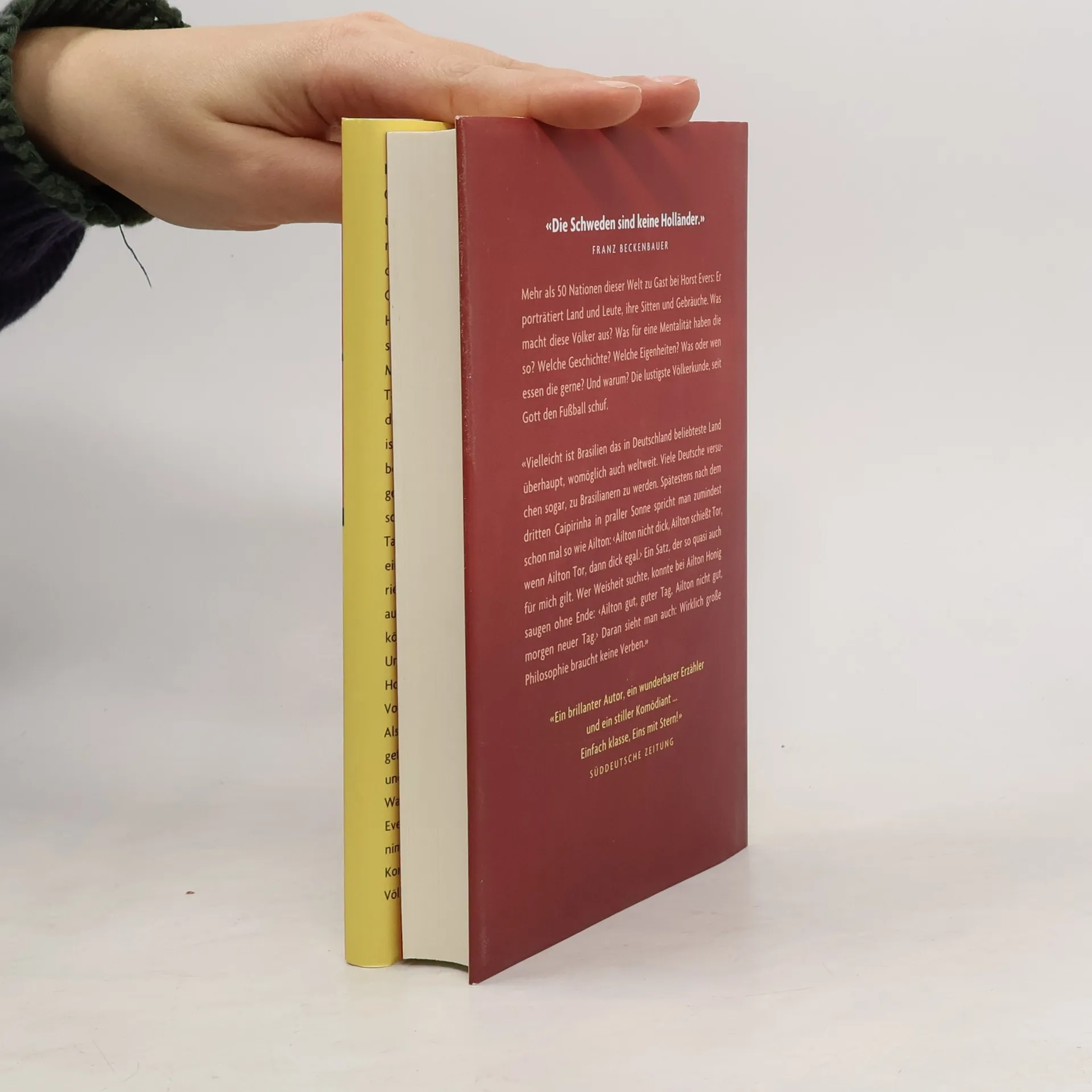 Die Welt des Fußballs bietet immer wieder schöne Gelegenheiten, Neues über andere Länder und Völker, über ihre Sitten und Gebräuche zu erfahren. Was macht diese Völker aus? Wie leben die Menschen dort? Was für eine Mentalität haben die so? Welche Geschichte? Welche Eigenheiten? Horst Evers bringt uns wirtschaftliche und gesellschaftliche Strukturen nahe: «Wenn Dänen nach Mitteleuropa kommen, sind sie häufig den ganzen Tag betrunken. Aus Sparsamkeit. Das ist überhaupt das Tolle an Skandinavien: Weil der Alkohol so teuer ist, gelten dort betrunkene und erst recht häufig betrunkene Menschen als sehr, sehr wohlhabend und genießen allergrößtes Ansehen. Beneidenswert.» Er schlägt historische Bögen vom Altertum bis in unsere Tage: «Die Griechen wissen ihre Geschichte gekonnt einzusetzen. Falls also eine Mannschaft plötzlich ein riesiges Holzpferd auf Höhe der Mittellinie entdeckt: auf keinen Fall in den eigenen Strafraum ziehen! Es könnte Brad Pitt oder Otto Rehhagel drinsitzen.» Und er erkundet die Weisheit anderer Völker: «Die Holländer sind hervorragende Kaufleute. Da sie keine Vorhänge mögen, haben sie das Glashaus erfunden. Als sie dann aber wegen der Hitze darin keine Mieter gefunden haben, bauten sie dort einfach Gemüse an, und schwupp waren sie reich.» Warmherzig, liebevoll und schräg porträtiert Horst Evers mehr als fünfzig Nationen dieser Welt und nimmt charakteristische Eigenheiten genauso aufs Korn wie althergebrachte Klischees. Die lustigste Völkerkunde, seit Gott den Ball geschaffen hat.