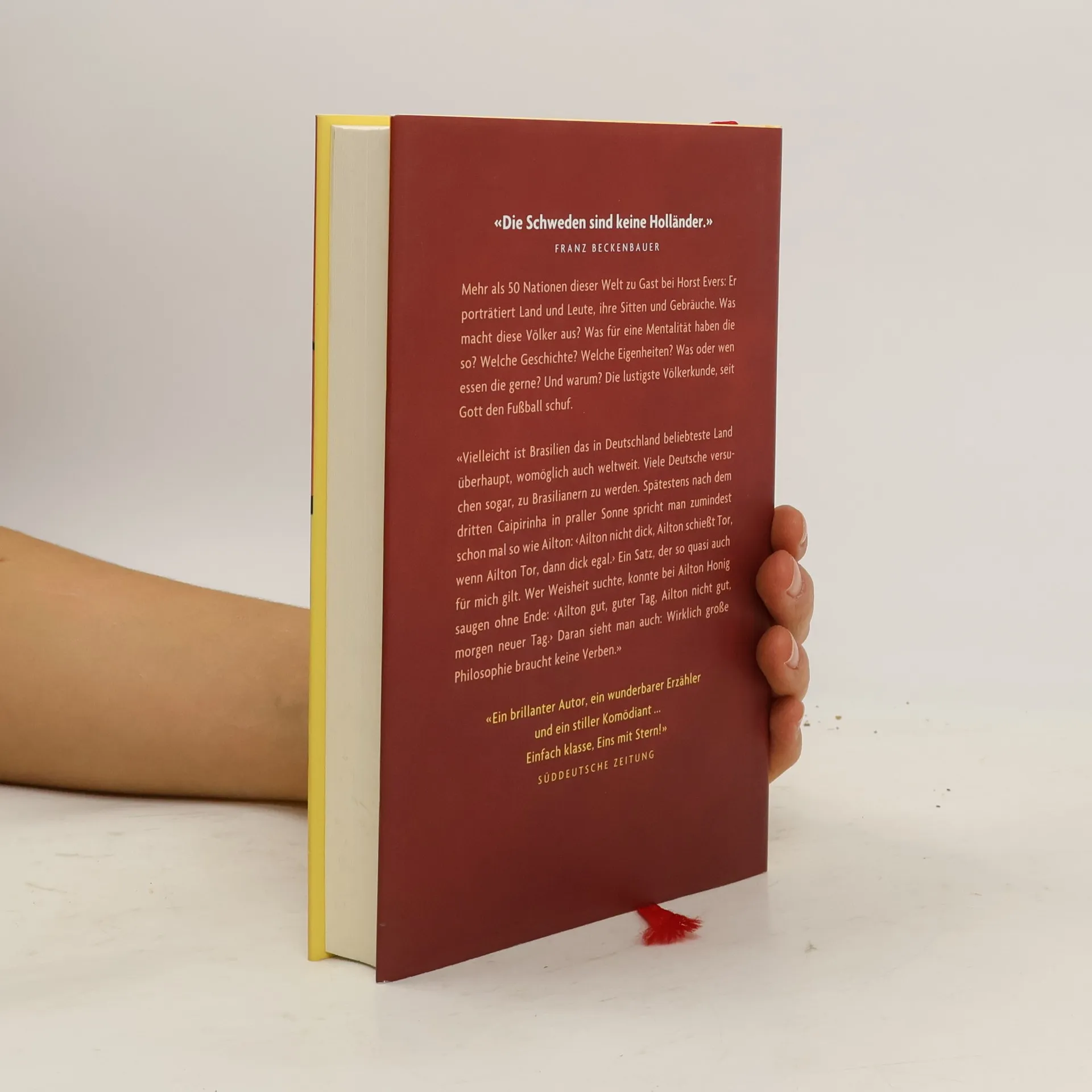 Die Welt des Fußballs bietet immer wieder schöne Gelegenheiten, Neues über andere Länder und Völker, über ihre Sitten und Gebräuche zu erfahren. Was macht diese Völker aus? Wie leben die Menschen dort? Was für eine Mentalität haben die so? Welche Geschichte? Welche Eigenheiten? Horst Evers bringt uns wirtschaftliche und gesellschaftliche Strukturen nahe: «Wenn Dänen nach Mitteleuropa kommen, sind sie häufig den ganzen Tag betrunken. Aus Sparsamkeit. Das ist überhaupt das Tolle an Skandinavien: Weil der Alkohol so teuer ist, gelten dort betrunkene und erst recht häufig betrunkene Menschen als sehr, sehr wohlhabend und genießen allergrößtes Ansehen. Beneidenswert.» Er schlägt historische Bögen vom Altertum bis in unsere Tage: «Die Griechen wissen ihre Geschichte gekonnt einzusetzen. Falls also eine Mannschaft plötzlich ein riesiges Holzpferd auf Höhe der Mittellinie entdeckt: auf keinen Fall in den eigenen Strafraum ziehen! Es könnte Brad Pitt oder Otto Rehhagel drinsitzen.» Und er erkundet die Weisheit anderer Völker: «Die Holländer sind hervorragende Kaufleute. Da sie keine Vorhänge mögen, haben sie das Glashaus erfunden. Als sie dann aber wegen der Hitze darin keine Mieter gefunden haben, bauten sie dort einfach Gemüse an, und schwupp waren sie reich.» Warmherzig, liebevoll und schräg porträtiert Horst Evers mehr als fünfzig Nationen dieser Welt und nimmt charakteristische Eigenheiten genauso aufs Korn wie althergebrachte Klischees. Die lustigste Völkerkunde, seit Gott den Ball geschaffen hat.
