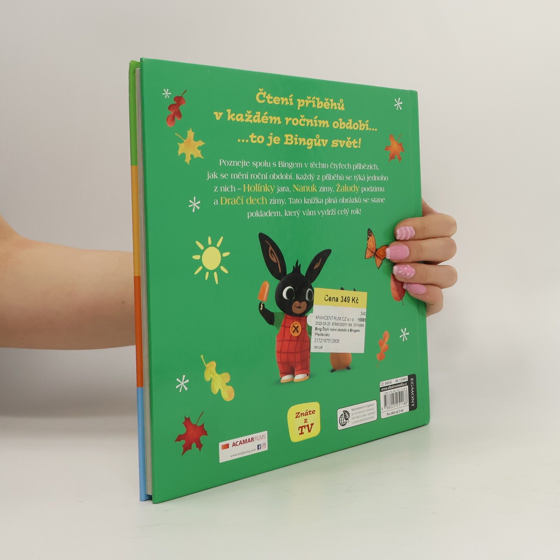Celý rok může být plný dobrodružství – ví to i zvídavý Bing, který děti tentokrát provede čtyřmi ročními obdobími. Co je zajímavého na jaře, na co se těšit v létě, jak barevný je podzim a co kouzelného přináší zima? Stačí se obléct podle počasí a vyrazit poznávat svět. S Bingem a partou jeho přátel nebude mít nuda šanci!