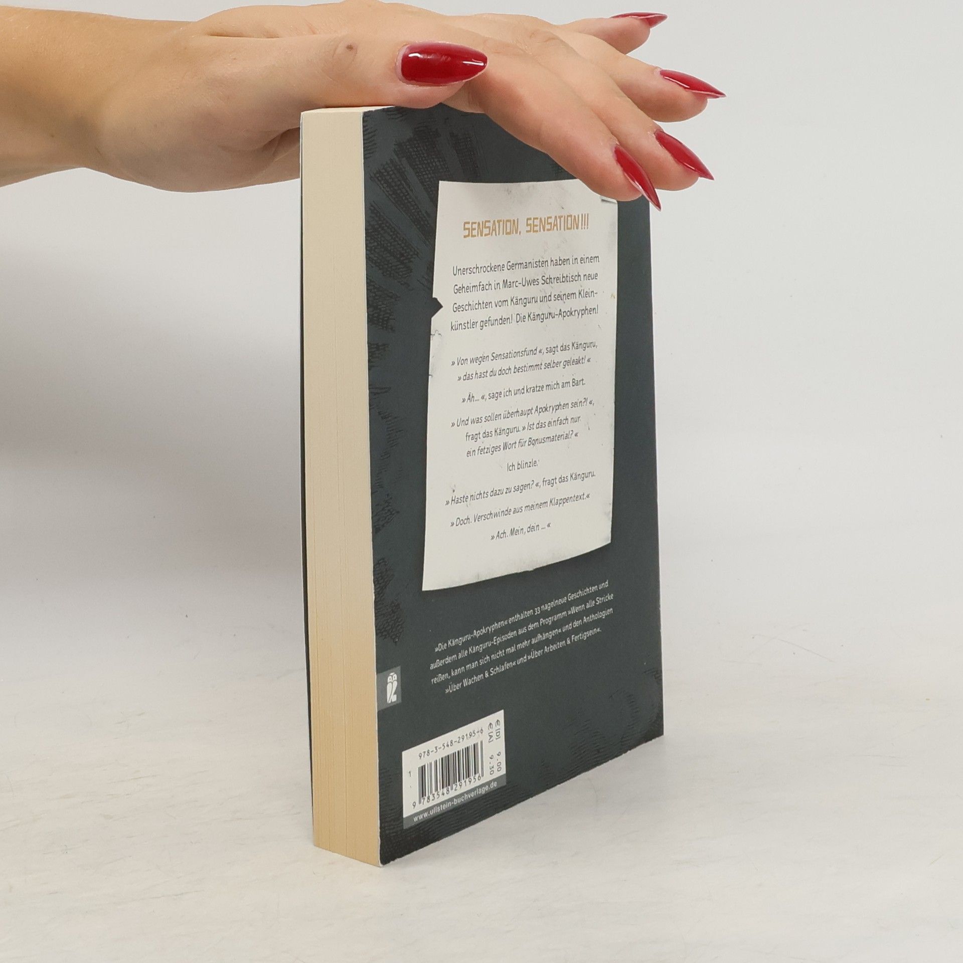 Sensation, Sensation: Archäologen haben in einem Geheimfach in Marc-Uwes Schreibtisch neue Geschichten vom Känguru und seinem Kleinkünstler gefunden! Dies ist nicht die Fortsetzung der Fortsetzung der Fortsetzung der Känguru-Chroniken. Triologie bleibt Triologie. Aber ein anständiger Kleinkünstler hat natürlich eine Zugabe vorbereitet. »Die Känguru-Apokryphen« versammeln zum ersten Mal alle weniger bekannten Eskapaden des dynamischen Duos: Episoden, die zwar nicht im allgemein gültigen Hochkanon der »Känguru-Trilogie« vertreten, aber ebenso witzig sind. Geschichten aus Anthologien, Live-Programmen ... und aus besagtem Geheimfach.