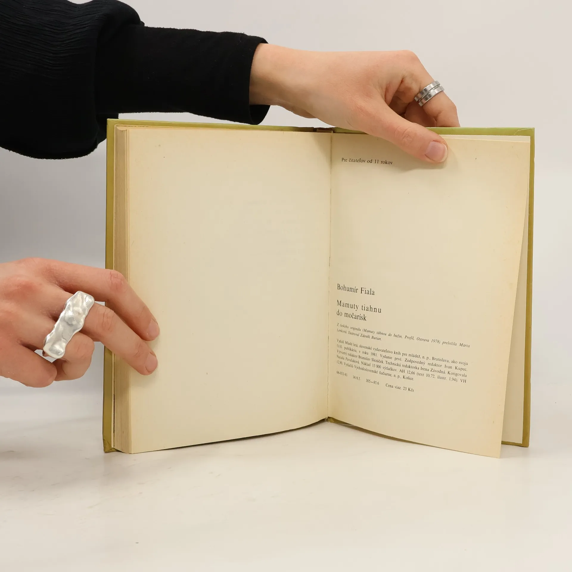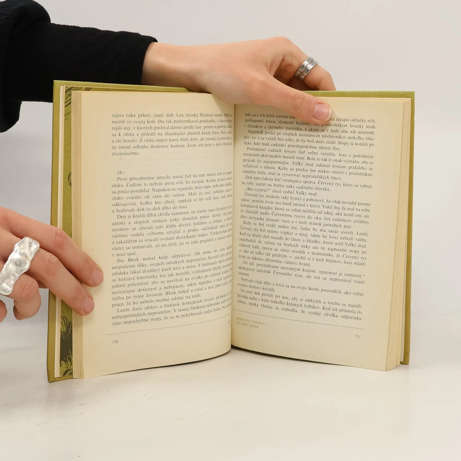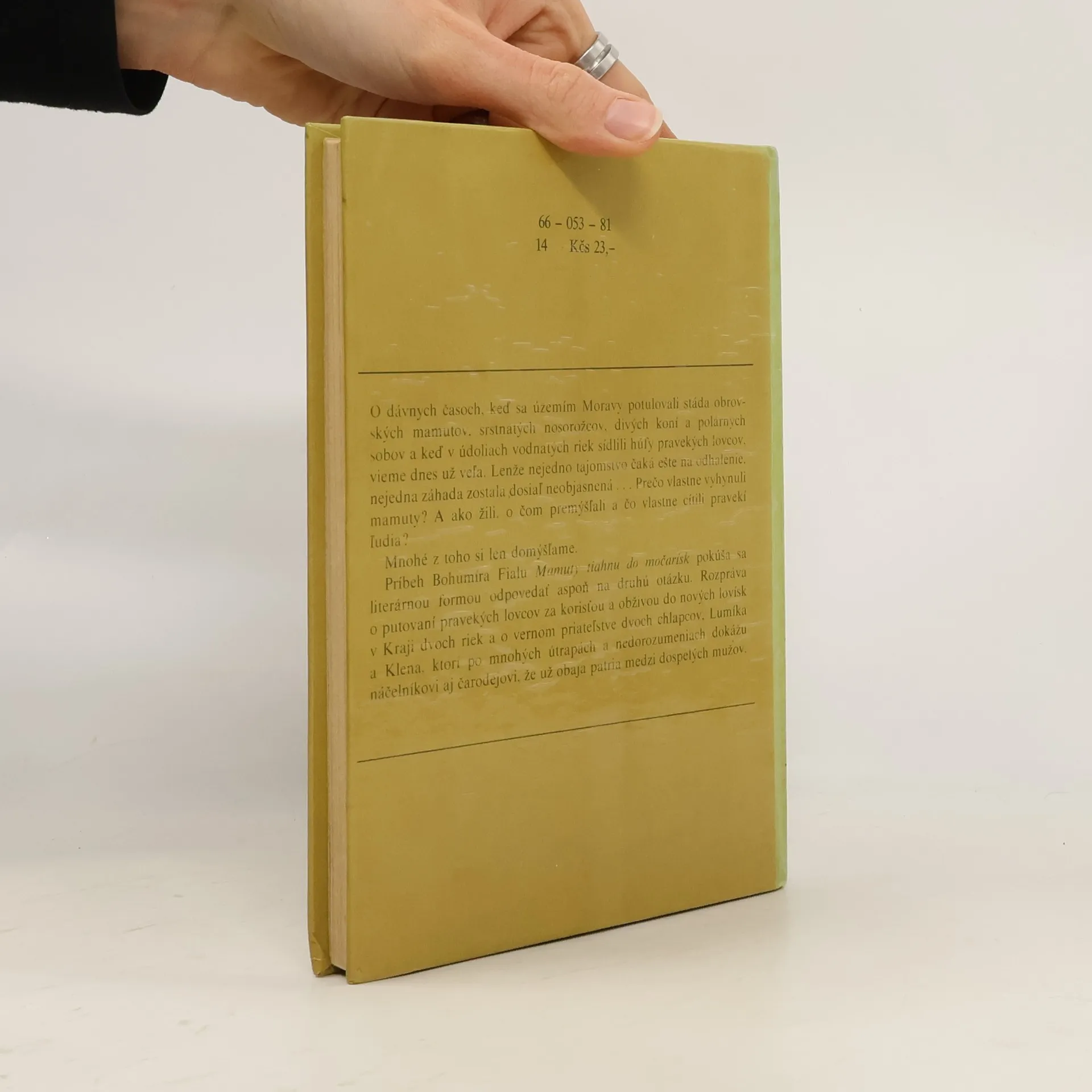 O dávnych časoch, keď sa územím Moravy potulovali stáda obrovských mamutov, srstnatých nosorožcov, divých koní a polárnych sobov a keď v údoliach vodnatých riek sídlili húfy pravekých lovcov, vieme dnes už veľa. Lenže nejedno tajomstvo čaká ešte na odhalenie, nejedna záhada zostala dosiaľneobjasnená... Prečo vlastne vyhynuli mamuty ? A ako žili, o čom premýšľali a čo vlastne cítili pravekí ľudia ? Mnohé z toho si len domýšľame. Príbeh rozpráva o putovaní pravekých lovcov za korisťou a obživou do nových lovísk v Kraji dvoch riek a o vernom priateľstve dvoch chlapcov, Lumíka a Klena, ktorí po mnohých útrapách a nedorozumeniach dokážu náčelníkovi aj čarodejovi, že už obaja patria medzi dospelých mužov. Prvé vydanie v slovenčine.