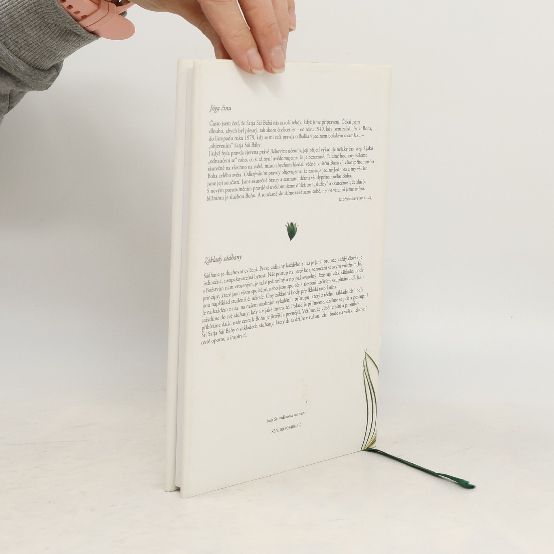 Výbor z učení a promluv Satja Sáí Báby. Pokud je přijmeme, držíme se jich a postupně Šrí Satja Sáí Báby o základech sádhany vám bude na vaší duchovní cestě oporou a inspirací. Je na každém z nás, na našem osobním vyladění a přístupu, který z těchto základních bodů zařadímě do své sádhany, kdy a v jaké intenzitě. Ony základní body předkládá tato kniha. Existují však základní body, principy, které jsou všem společné, nebo jsou společné alespoň určitým skupinám lidí, jako jsou například studenti čii učitelé. Náš postup na cestě ke sjednocení se svým vnitřním Já, s Božstvím nám vrozeným, je také jedinečný a neopakovatelný. Praxe sádhany každého z nás je jiná, protože člověk je jedinečná, neopakovatelná bytost. Sádhana je duchovní cvičení.