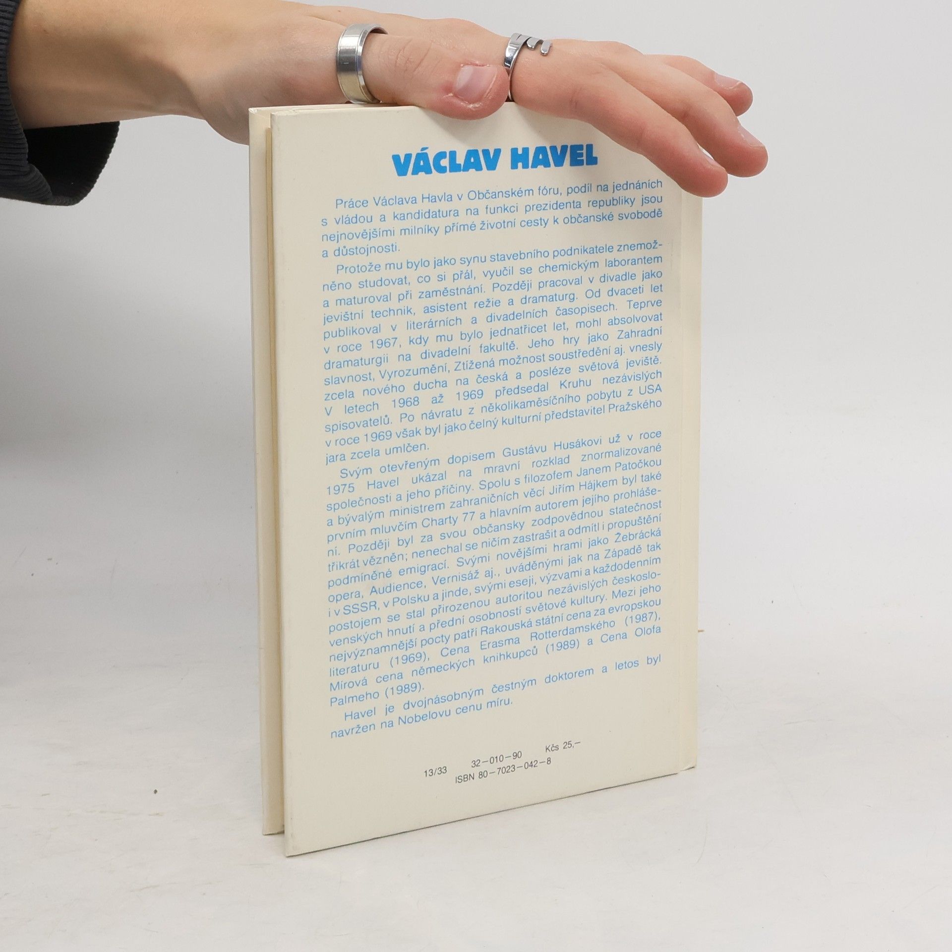Rozhovor Václava Havla s Karlem Hvížďalou. Kniha, která měla české veřejnosti představit Václava Havla, člověka, o kterém do listopadu 1989 lidé mohli slýchat jen z rádia Svobodná Evropa či Hlasu Ameriky případně o něm číst v Rudém právu články typu Samozvanci a ztroskotanci. Rozhovor vznikal v letech 1985-86 na dálku. Hvížďala žil v Bonnu, Havel v Praze. Havlovsky nekonečné komplikované, ale přesto milé věty... 2. vydání v Melantrichu.