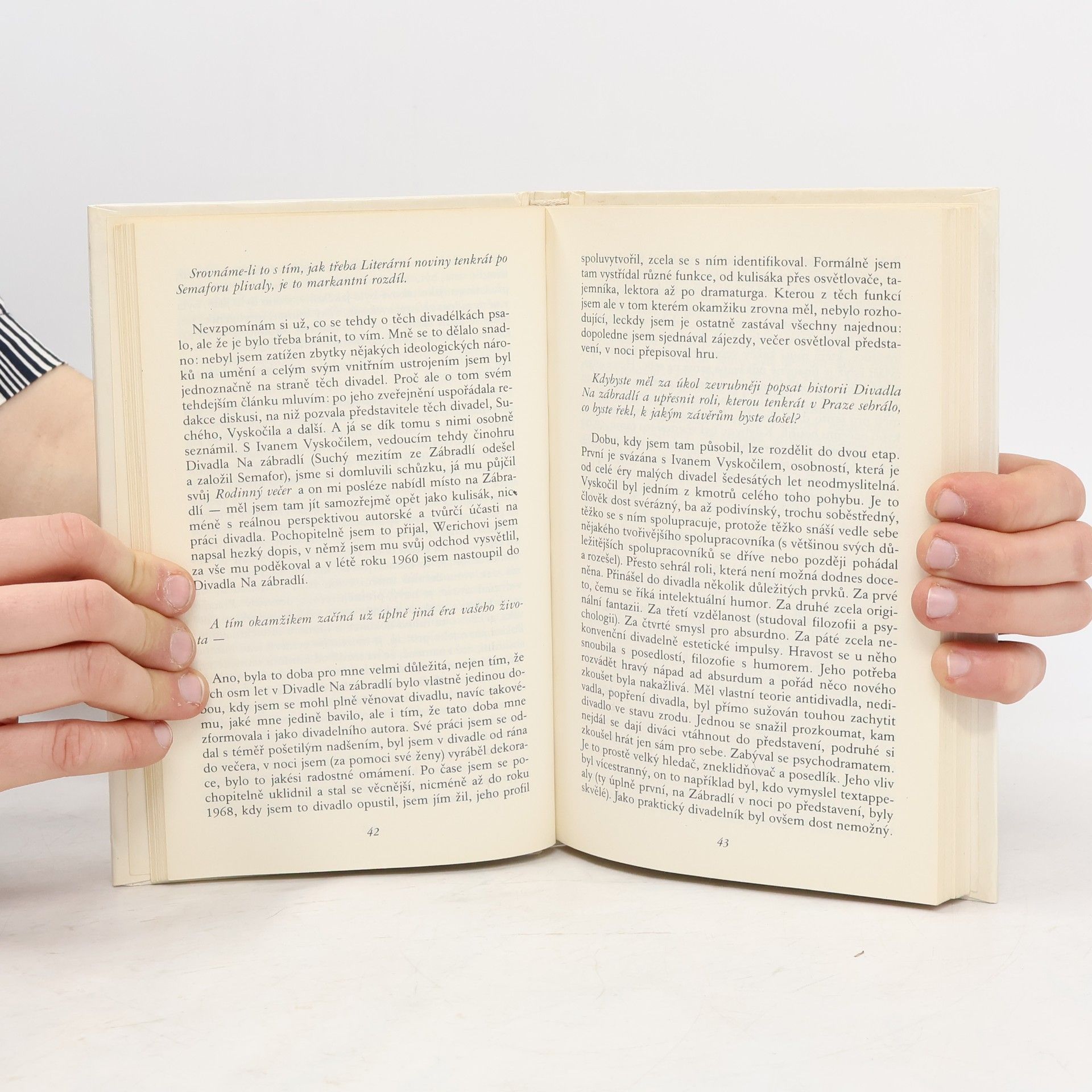 Rozhovor Václava Havla s Karlem Hvížďalou. Kniha, která měla české veřejnosti představit Václava Havla, člověka, o kterém do listopadu 1989 lidé mohli slýchat jen z rádia Svobodná Evropa či Hlasu Ameriky případně o něm číst v Rudém právu články typu Samozvanci a ztroskotanci. Rozhovor vznikal v letech 1985-86 na dálku. Hvížďala žil v Bonnu, Havel v Praze. Havlovsky nekonečné komplikované, ale přesto milé věty... 2. vydání v Melantrichu.