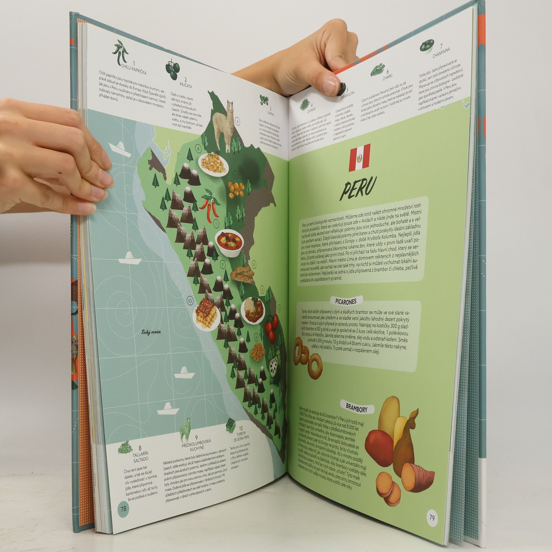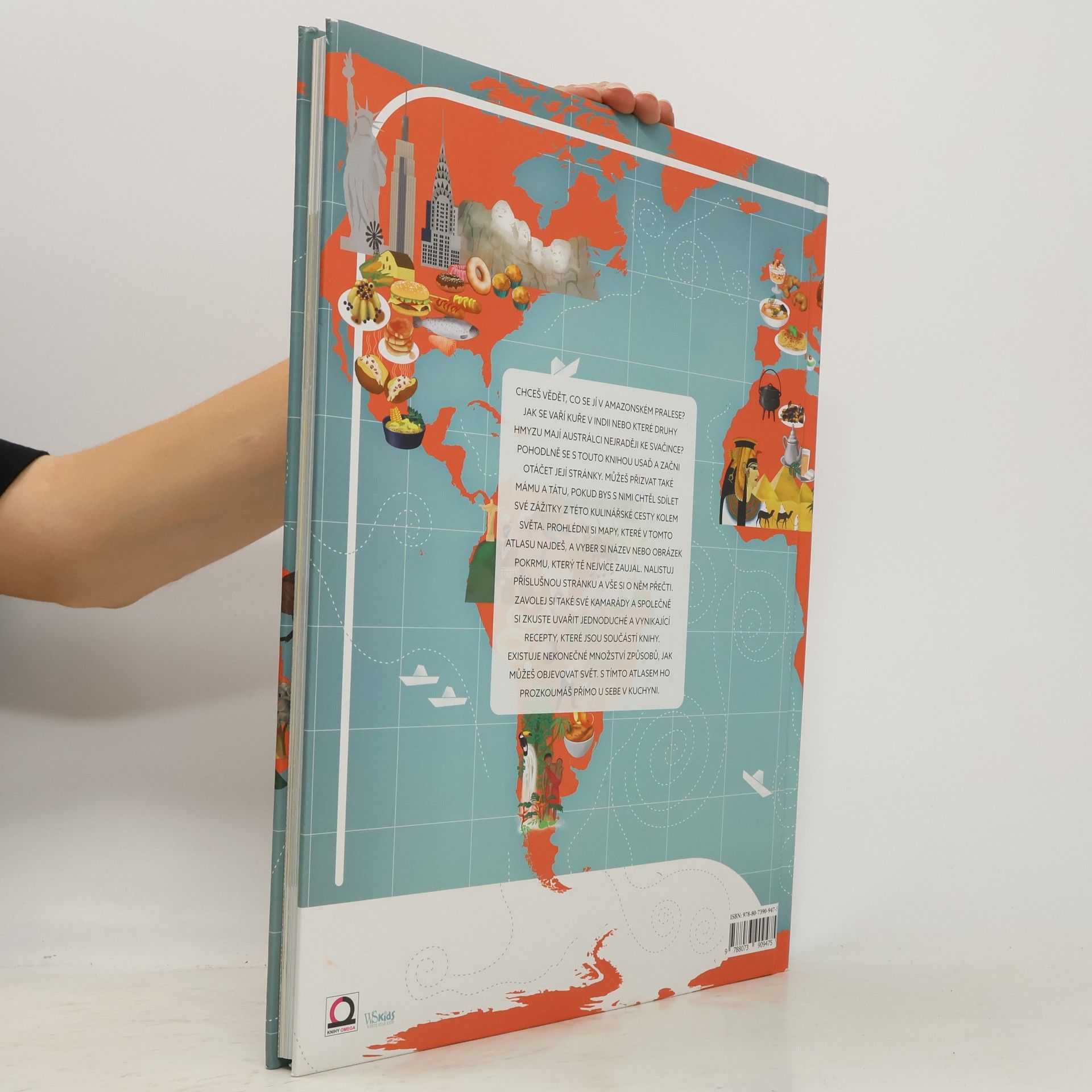 Na svět se můžeme dívat z mnoha různých úhlů pohledu, ale tou jednoznačně nejzajímavější optikou je jídlo. Vždyť se přeci říká ,,jste to, co jíte",a tak se není čemu divit, že určitá jídla odráží kulturu, zvyky a vztahy k přírodě těch, kteří je stvořili. S touto knihou se vydáte na cestu za tajemstvími tradičních jídel nejrůznějších zemí světa. Dozvíte se, že tapas (španělské ,, chlebíčky") dostaly své jméno tak, že se jimi přikrývaly (špaňelsky ,,tapar") sklenice vína, nebo že první pizza byla pojmenovaná po italské královně Margheritě. S kresbami jednotlivých pokrmů na mapách se vydáte do světa chutí, porozumíte tradicím, a možná i dostanete na něco chuť.