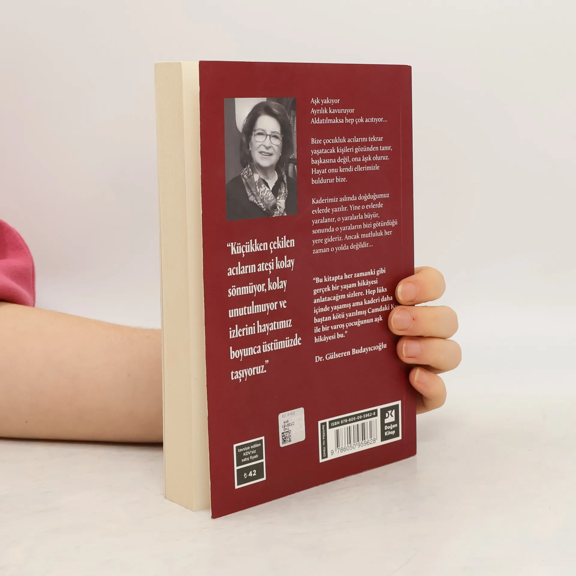 “Küçükken çekilen acıların ateşi kolay sönmüyor, kolay unutulmuyor ve izlerini hayatımız boyunca üstümüzde taşıyoruz.” Aşk yakıyor Ayrılık kavuruyor Aldatılmaksa hep çok acıtıyor… Bize çocukluk acılarını tekrar yaşatacak kişileri gözünden tanır, başkasına değil, ona âşık oluruz. Hayat onu kendi ellerimizle buldurur bize. Kaderimiz aslında doğduğumuz evlerde yazılır. Yine o evlerde yaralanır, o yaralarla büyür, sonunda o yaraların bizi götürdüğü yere gideriz. Ancak mutluluk her zaman o yolda değildir… “Bu kitapta her zamanki gibi gerçek bir yaşam hikâyesi anlatacağım sizlere. Hep lüks içinde yaşamış ama kaderi daha baştan kötü yazılmış Camdaki Kız ile bir varoş çocuğunun aşk hikâyesi bu.” - Dr. Gülseren Budayıcıoğlu-